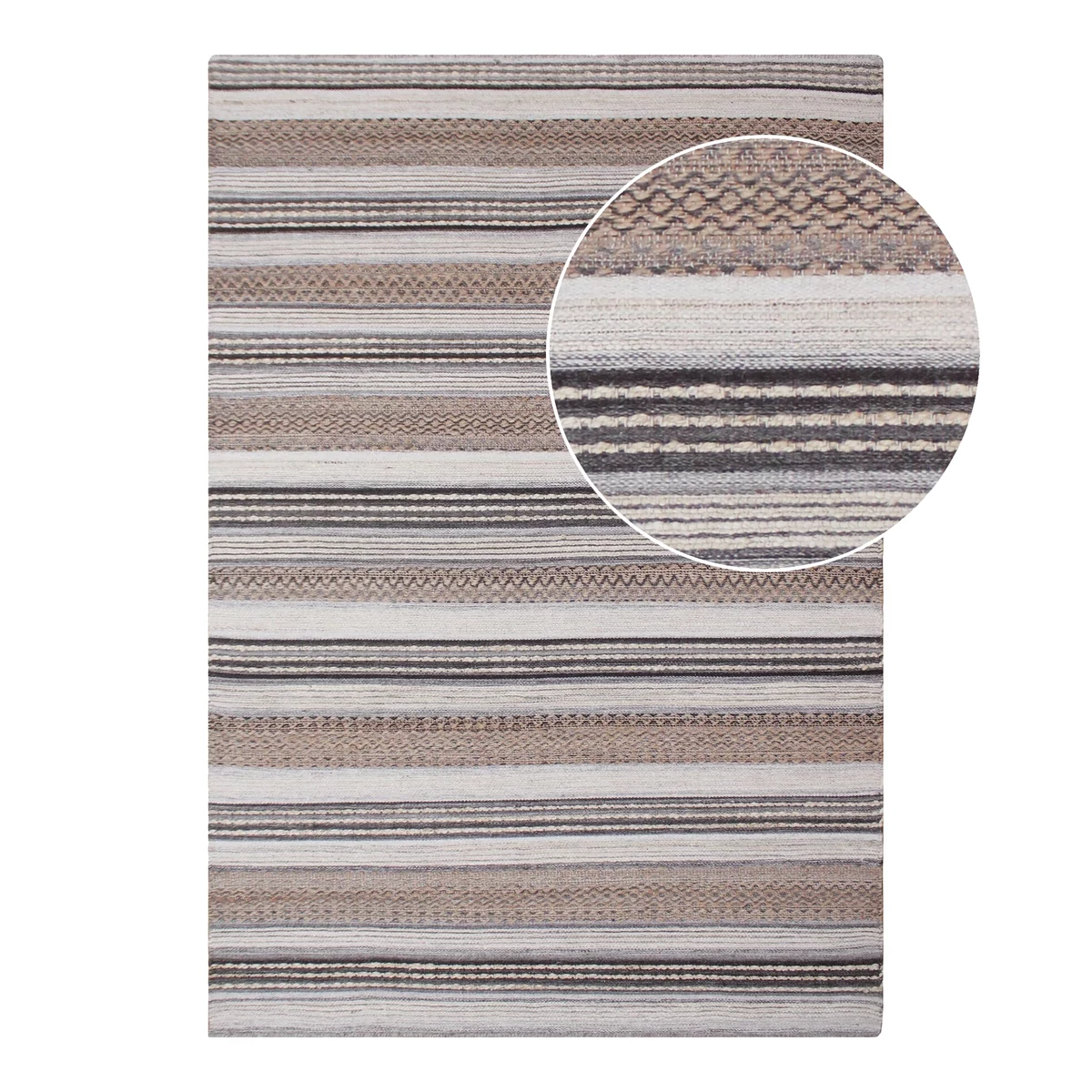 Barna és szürke csíkos szőnyeg, amely igazi skandináv stílusú, természetes anyagokból készült szőnyeg. A szőnyeg nagy méretű, ezért jól fog mutatni a nappaliban vagy akár 6-8 személyes étkezőasztal alatt is. Javasolt csúszásgátló elhelyezése alatta. Mérete: 200x300 cm. Gyártó: House Nordic