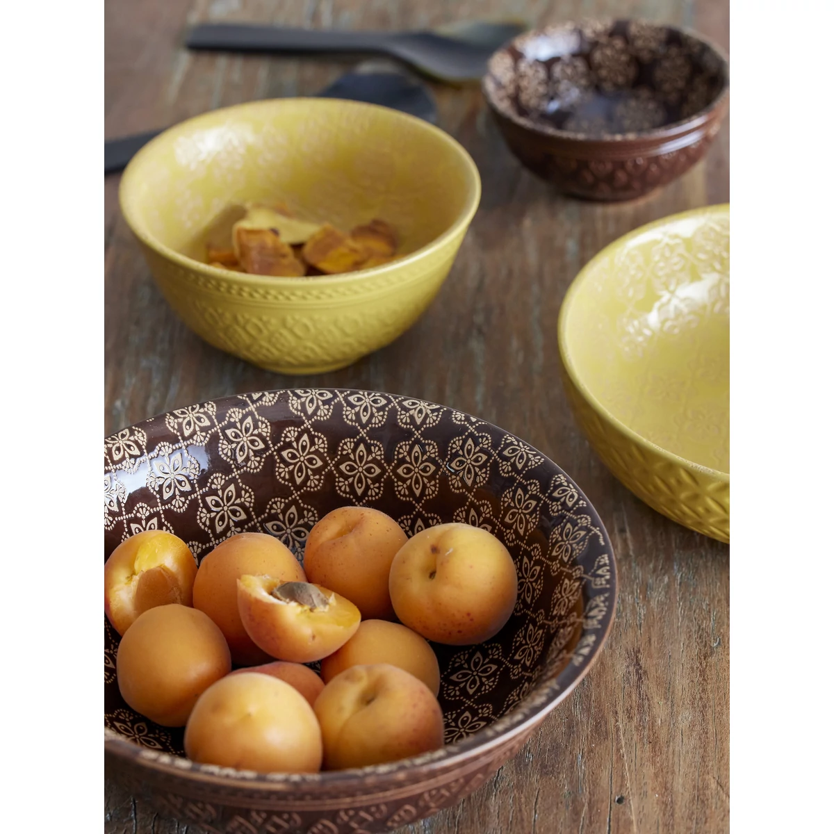 Barna virág mintás nagy tál szett, amely virág motívumokkal díszített, dombormintás egyedi tálakból áll. A kerámia tálak kézzel mázoltak, ezért apró eltérések előfordulhatnak. Mérete 21x8 cm, űrtartlama 1.400 ml. Gyártó: Creative Collection