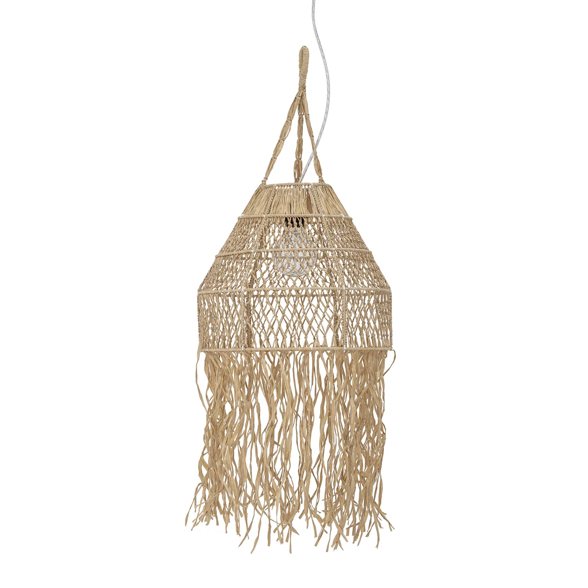 Bohém raffia függőlámpa. Izgalmas megjelenésú kiegészítő, ami skandináv dizájn jegyében készült. Mérete: 40x99 cm