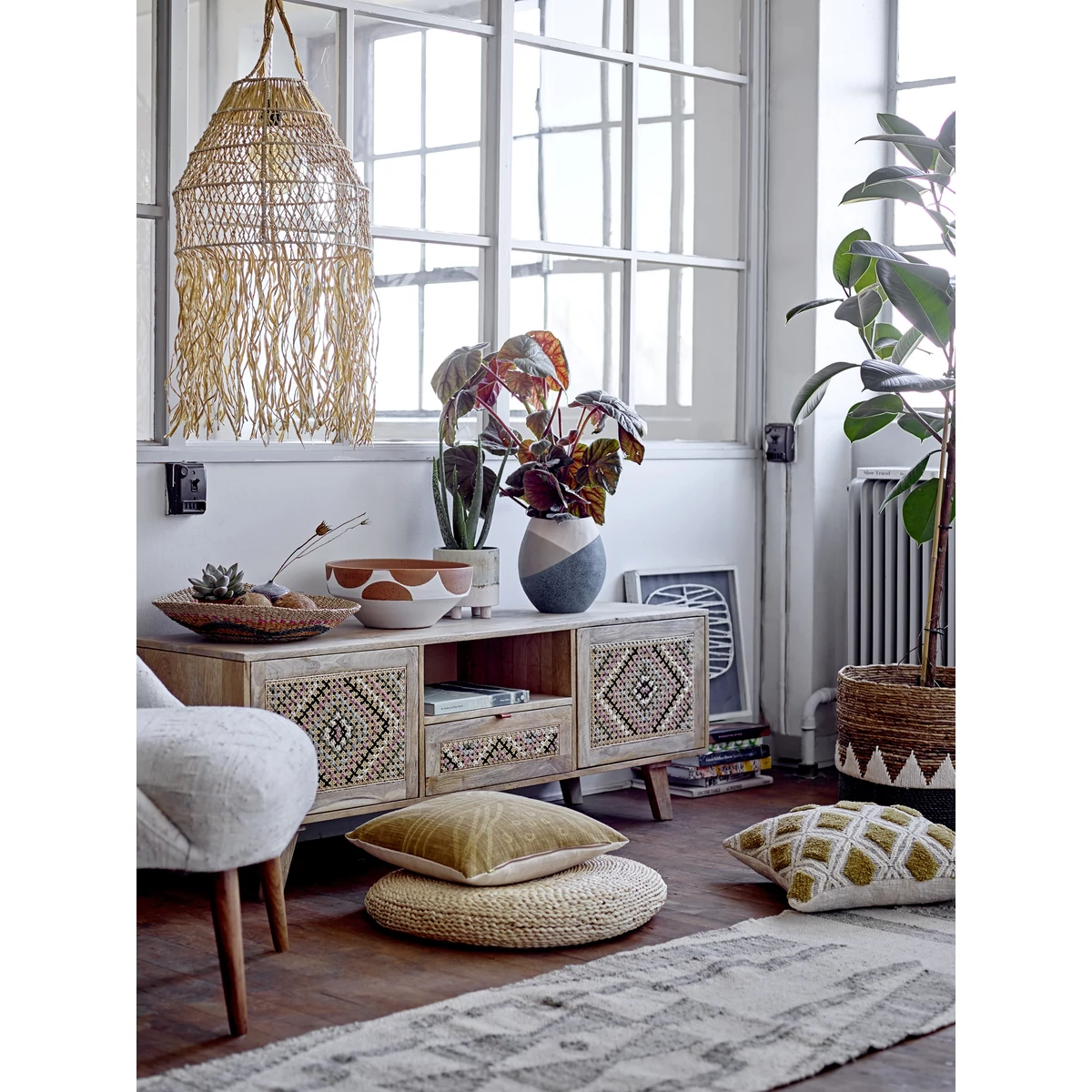 Bohém raffia függőlámpa, amely tökéletes beltérben vagy fedett verandán egyaránt. Világítsd meg otthonod ezzel a lámpával, hogy a hangulat garantált legyen. A vezeték hossza 250 cm, anyaga műanyag. Mérete ø 40x99 cm. Gyártó: Creative Collection by Bloomingville