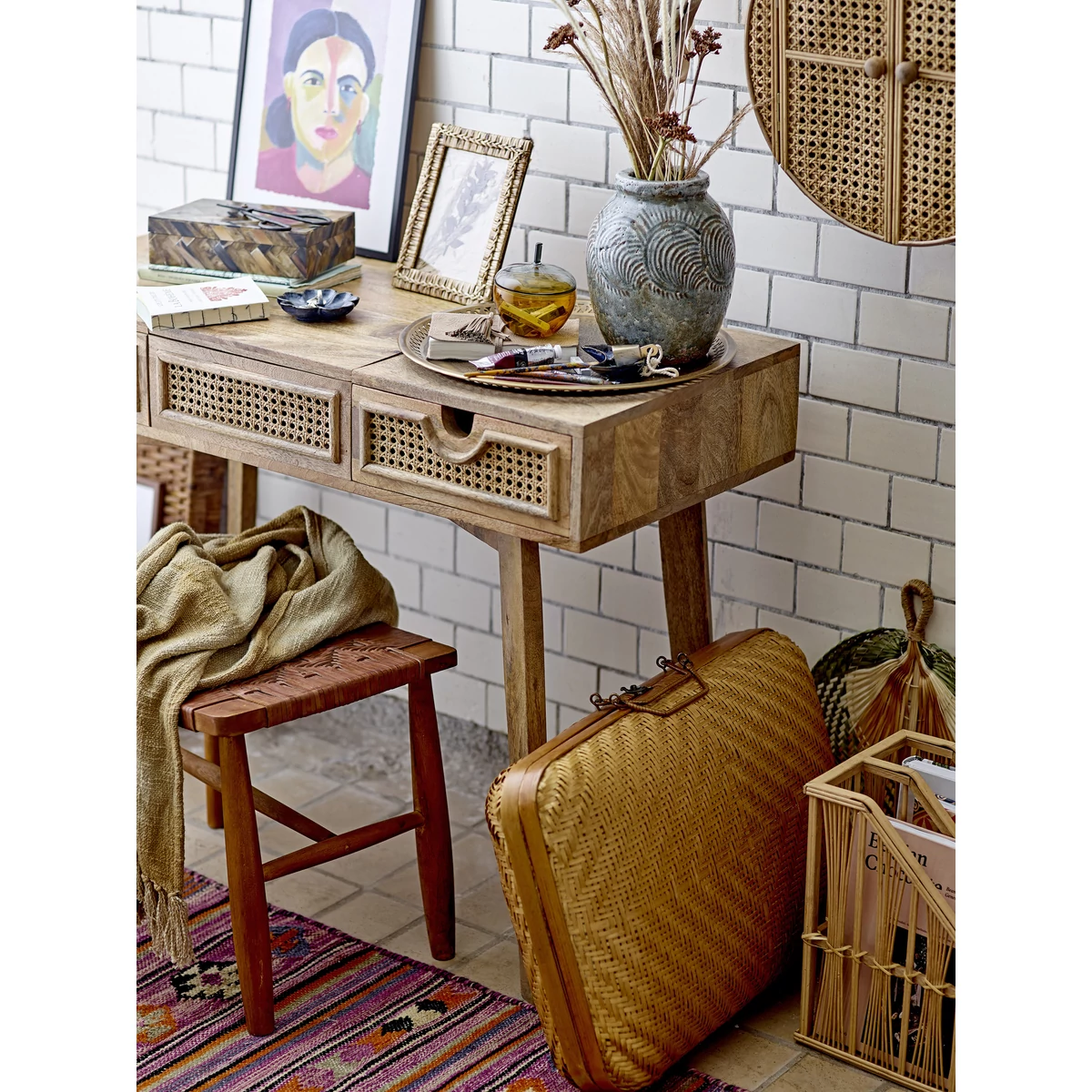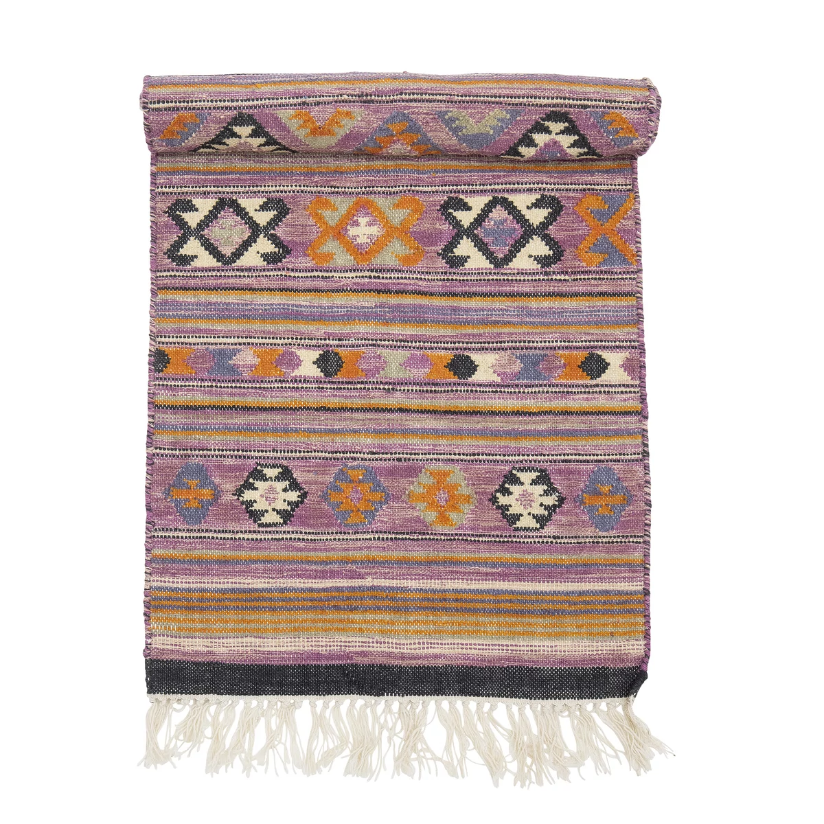 Bohém színes mintás szőnyeg, amely absztrakt mintás, rózsaszín és egyéb színű, vidám fiatalos szőnyeg, mindkét végén rojtokkal. A szőnyeg bohém hangulata garantáltan feldobja a szobát. Ajánljuk a nappali szobába vagy előszobába. Mérete 245x75 cm. Gyártó: Bloomingville