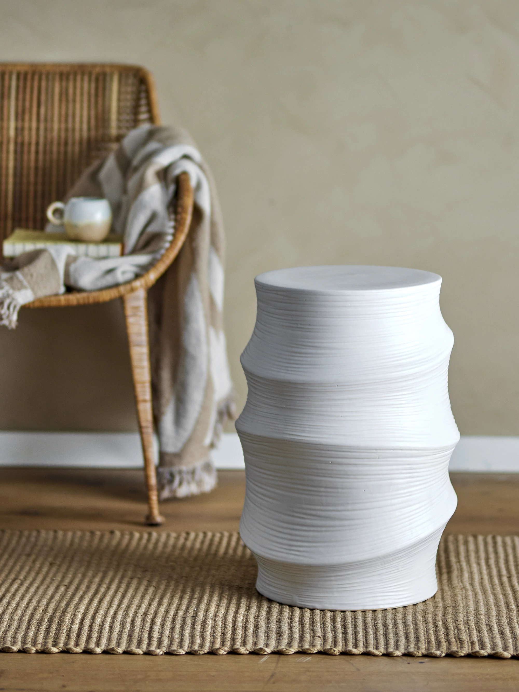Fehér kerámia lerakó asztal, amely szoborszerű művészi formájával az otthonod éke lesz. Helyezd el rajta kedvenc dísztárgyaid vagy keretezett fényképet, mindenképpen felhívja magára a figyelmet. Külseje mázolt, teherbírása max. 100 kg. Mérete 37x51 cm. Gyártó: Bloomingville