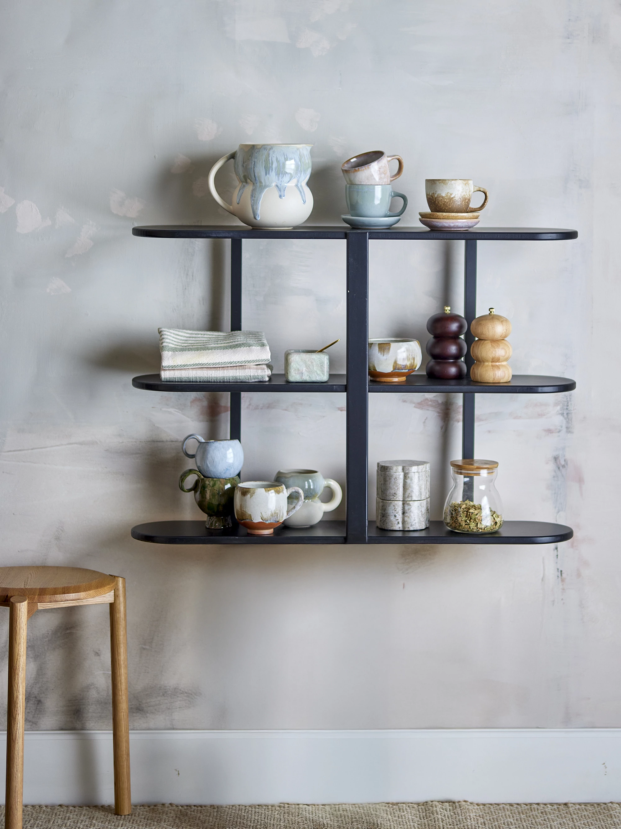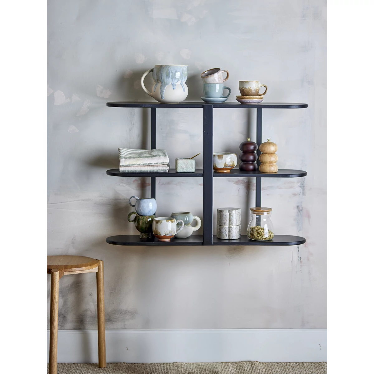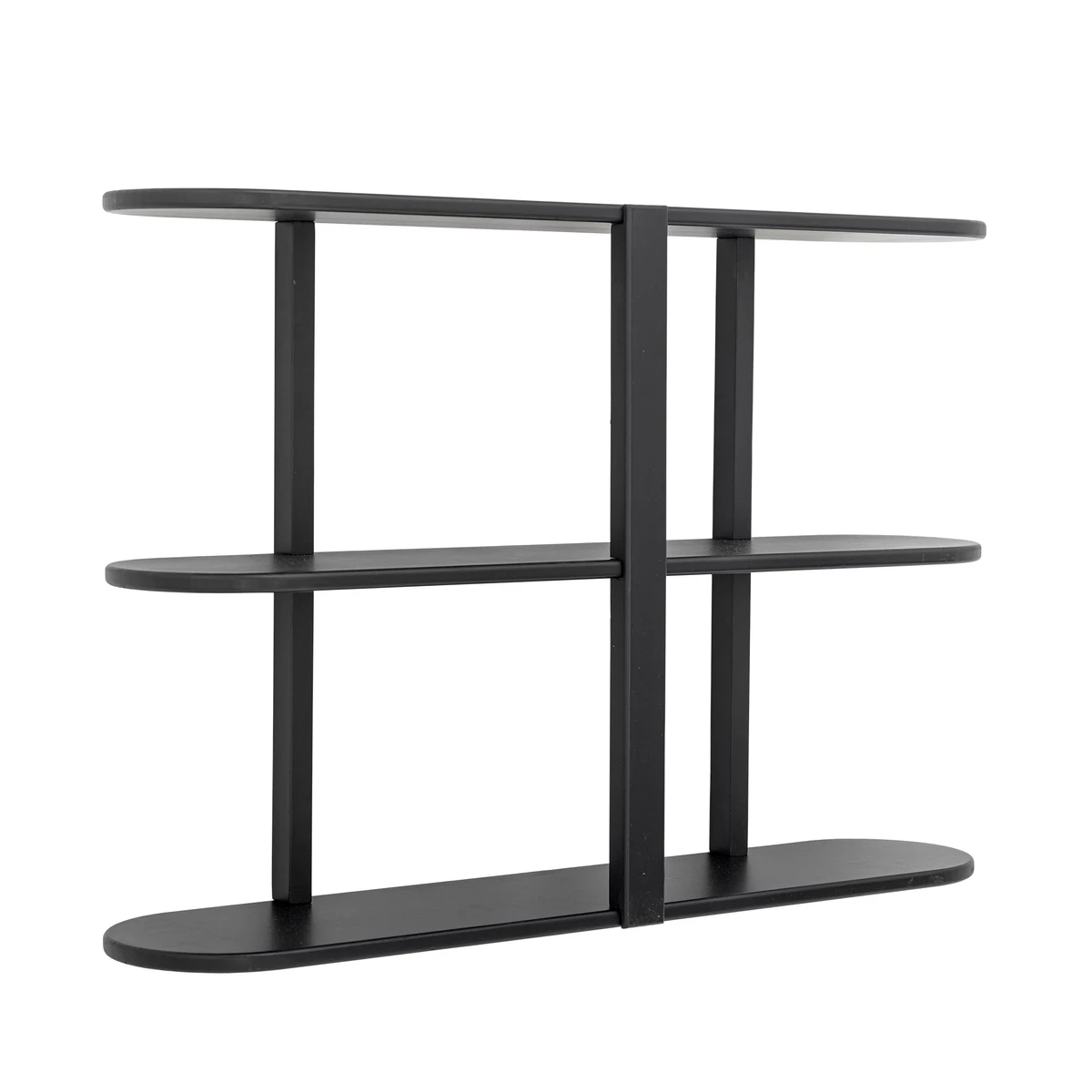 Fekete 3 polcos tárolóelem, amely praktikus tárolóhely és egyben stílusos kiegészítő bútor az otthonodban. Használhatod földre téve vagy falra szerelve is. Anyaga 70% MDF lap, 30% fenyőfa. Mérete 80x55,5x19 cm Gyártó: Bloomingville