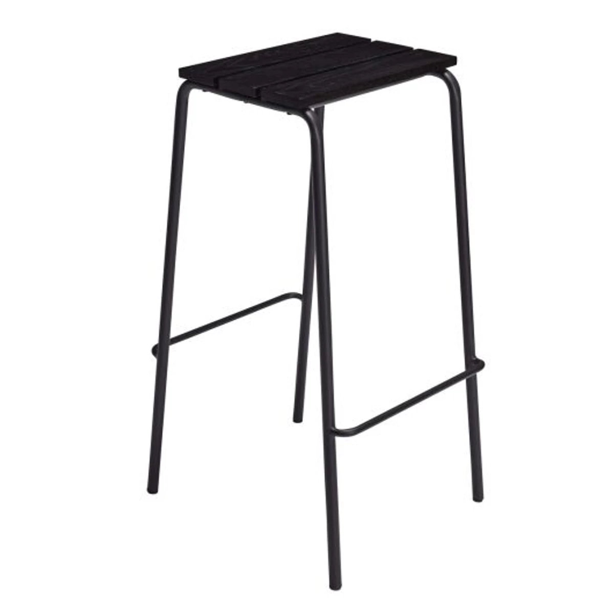 Fekete bárszék, amely praktikus és modern skandináv kiegészítő az otthonodban. A bárszék erős fém váza lábtartóval ellátott a kényelem érdekében, ülőrésze pedig FSC® minősített kőris fából készült így biztosítva a kényelmes ülést. Mérete: 45x38x76 cm. Gyártó: Hübsch
