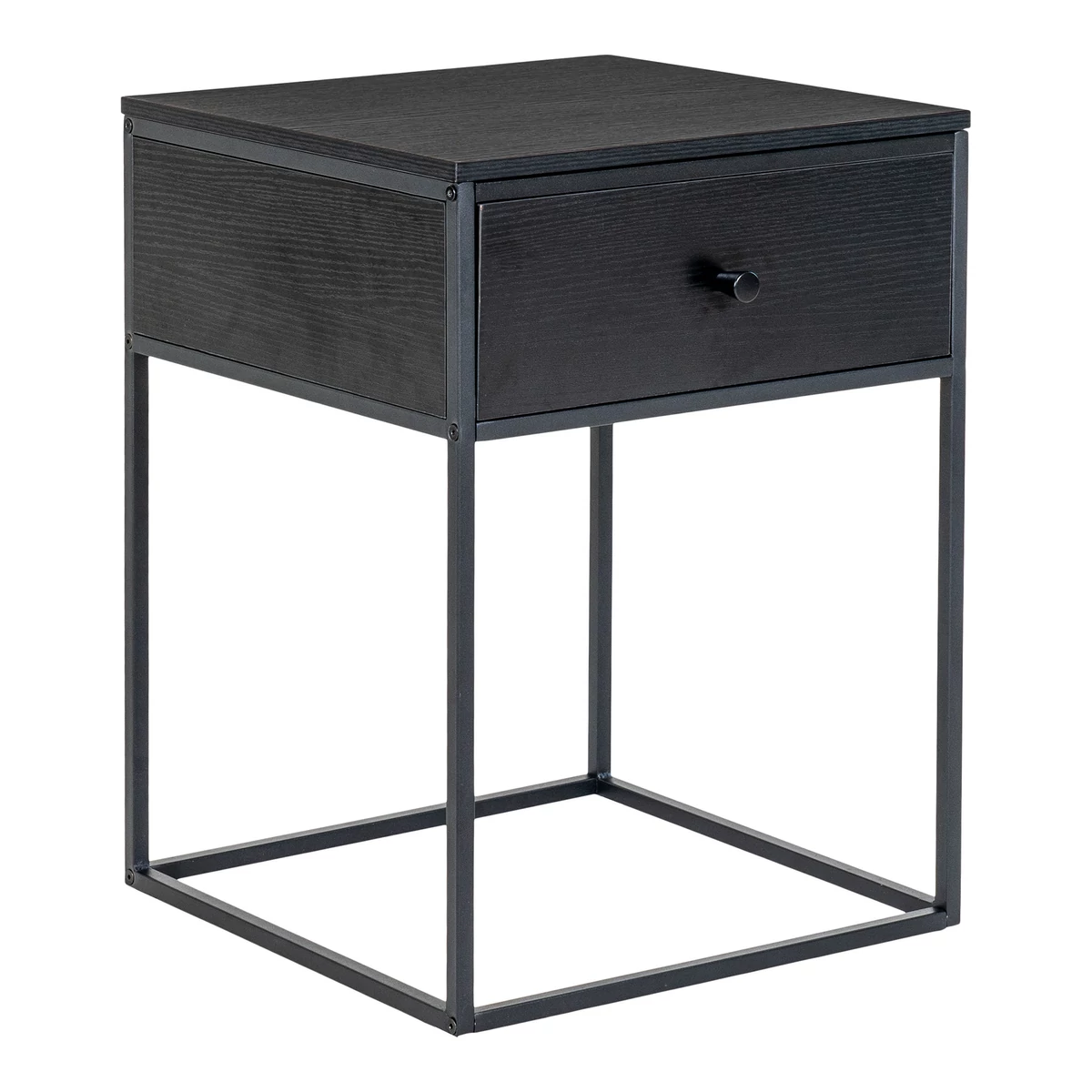 Fekete fiókos éjjeliszekrény, amely praktikus kiegészítő a hálószobában. Az éjjeliszekrény lapján kislámpa, könyv, óra is elférnek, fiókjában egyéb személyes tárgyainkat tarthatjuk. Mérete 40x40x55 cm. Gyártó: House Nordic