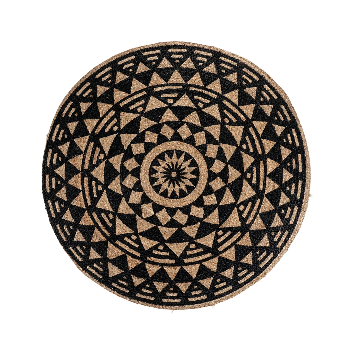 Fekete mintás kör juta szőnyeg, amely természetes anygú és hangsúlyos fekete mintája teszi feltünővé. Tedd a teraszra vagy akár a nappaliba, jól illeszkedik a természetes anyagú és stílusú bútorokhoz és a zöld növényekhez. A szőnyeg átmérője 120 cm. Gyártó: House Nordic