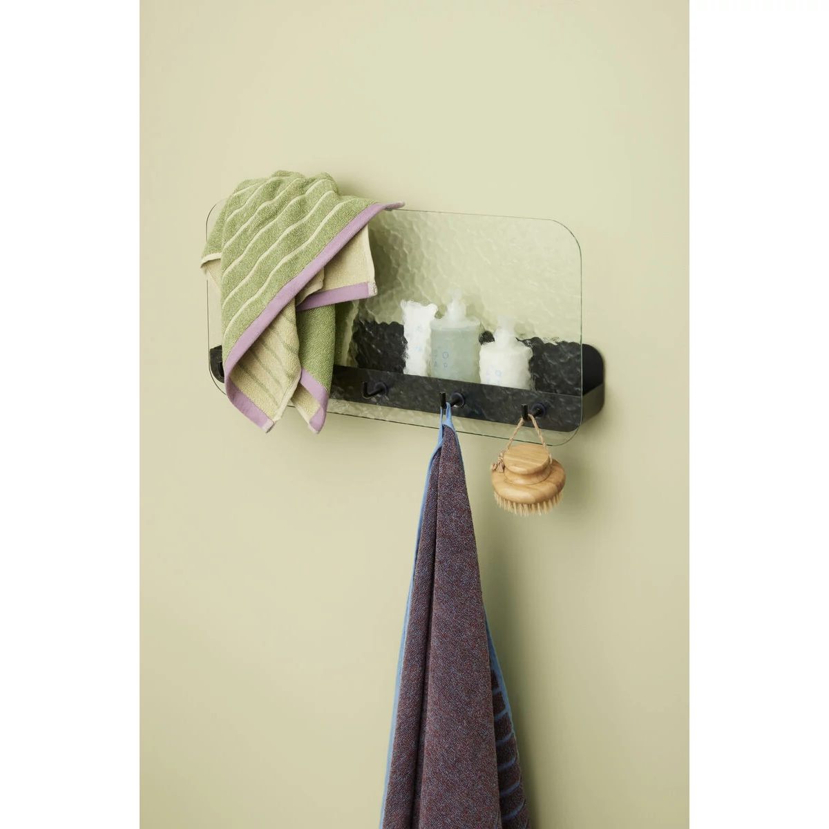 Fekete polcos fogas, amely egy praktikus és stílusos kiegészítő. Használhatod a fürdőszobában törülköző akasztónak vagy az előszobában. A fém alap tartóssá, az üveg lap pedig érdekessé teszi ezt a hétköznapi tárgyat. Teherbírása max. 20 kg. Mérete 60x13x30 cm. Gyártó: Hübsch