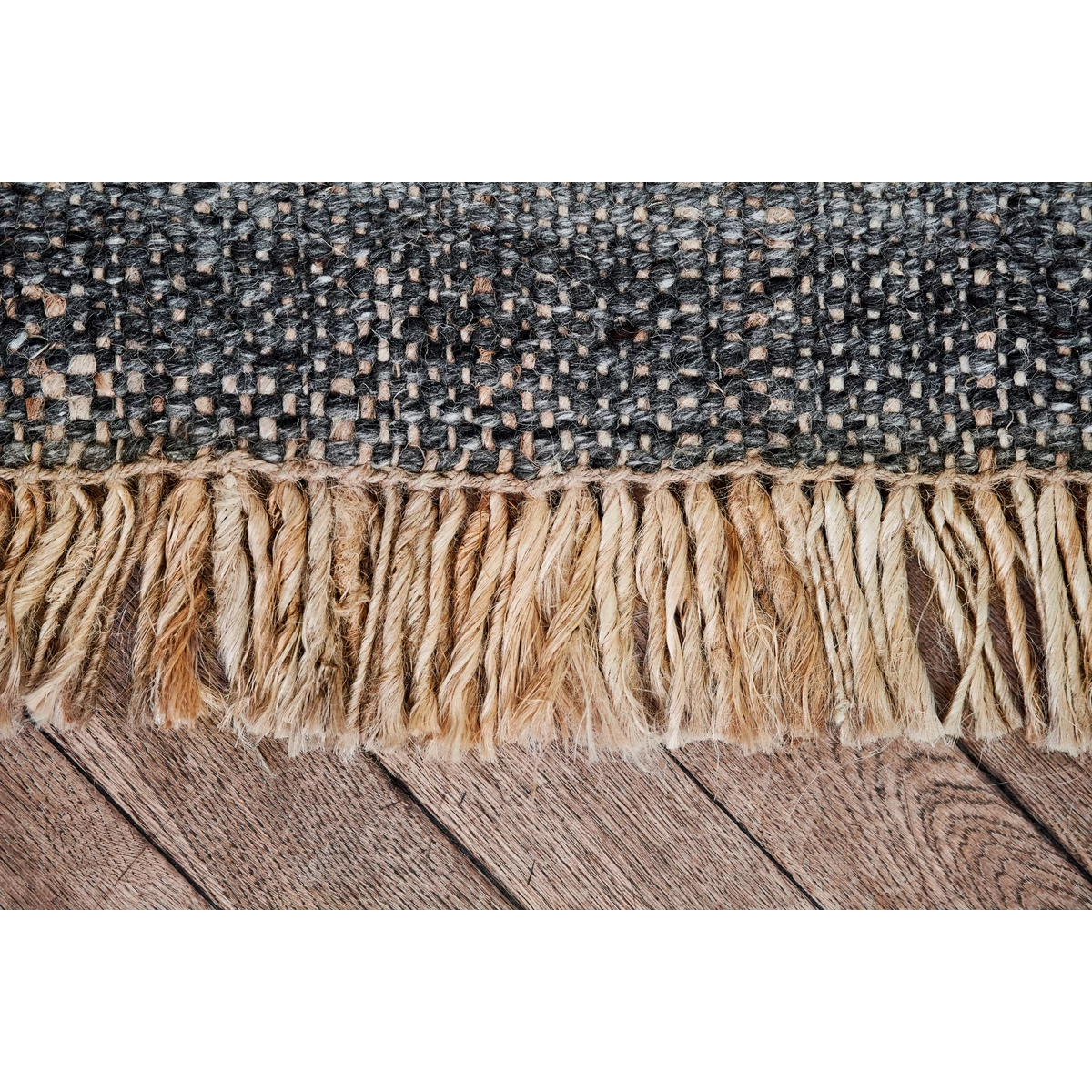 Fekete prémium gyapjú szőnyeg gyönyörű és modern stílusú, kézi szövésű szőnyeg, mely Indiában készült. Ez a szőnyeg minimalista megjelenésével minden helyiségben jól mutat, a hosszú rojtok most nagyon divatosak. A szőnyeg nagyon különleges kézi szövéssel készült, mely elképesztő struktúrát ad neki és amelynek köszönhetően lenyűgöző megjelenést nyújt. Anyaga gyapjú és juta. A gyapjú szőnyegek körültekintő ápolásával évtizedekig élvezheted szépségüket. Mérete: 240x170 cm. Gyártó: Rezas