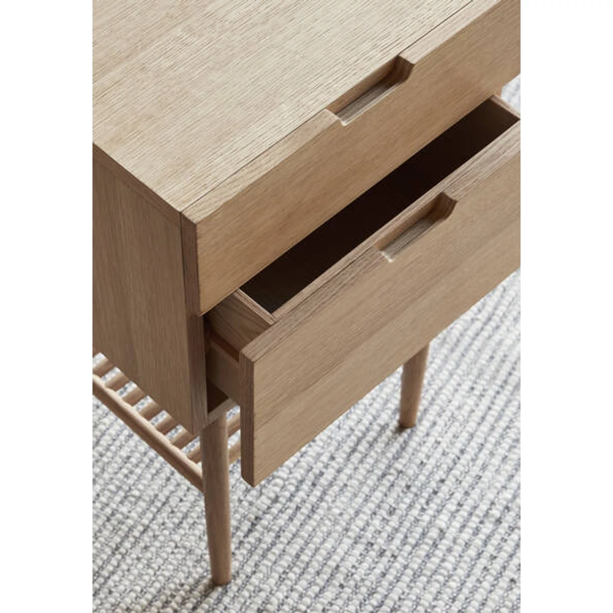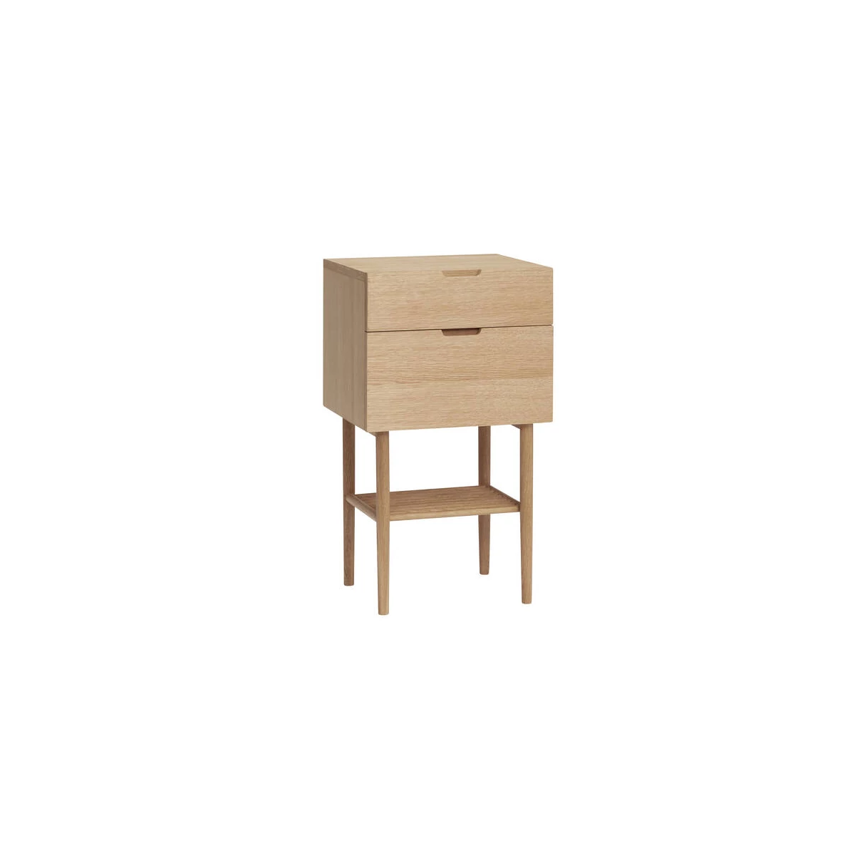 Fiókos natúr tölgyfa éjjeliszekrény,amely stílusos és gyönyörű kivitelezésű. Az éjjeliszekrény 2 darab fiókkal és egy polccal rendelkezik. A fiókok tökéletesek azok számára, akik nem szeretik ha elől vannak a kisebb-nagyobb tárgyak a hálószobában, így minden, ami az esti pihenés előtt kell kéznél van de nappal nincs szem előtt. Az éjjeliszekrény anyaga tömör fehér tölgyfa, mérete 40x35x70 cm. Gyártó: Hübsch