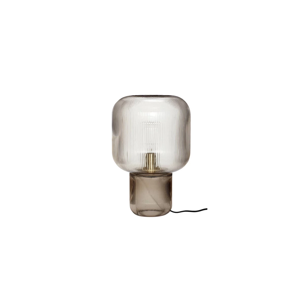 Füst színű üveg asztali lámpa, modern fiatalos jellegét a "körte a körtében" ötletnek köszönheti. Füstös színével nagyszerűen illik tinédzser szobába vagy nappaliba. A búra tompítja a fényt, így hangulatvilágításnak is tökéletes. A lámpa magassága 42 cm, átmérője 27 cm. Gyártó: Hübsch