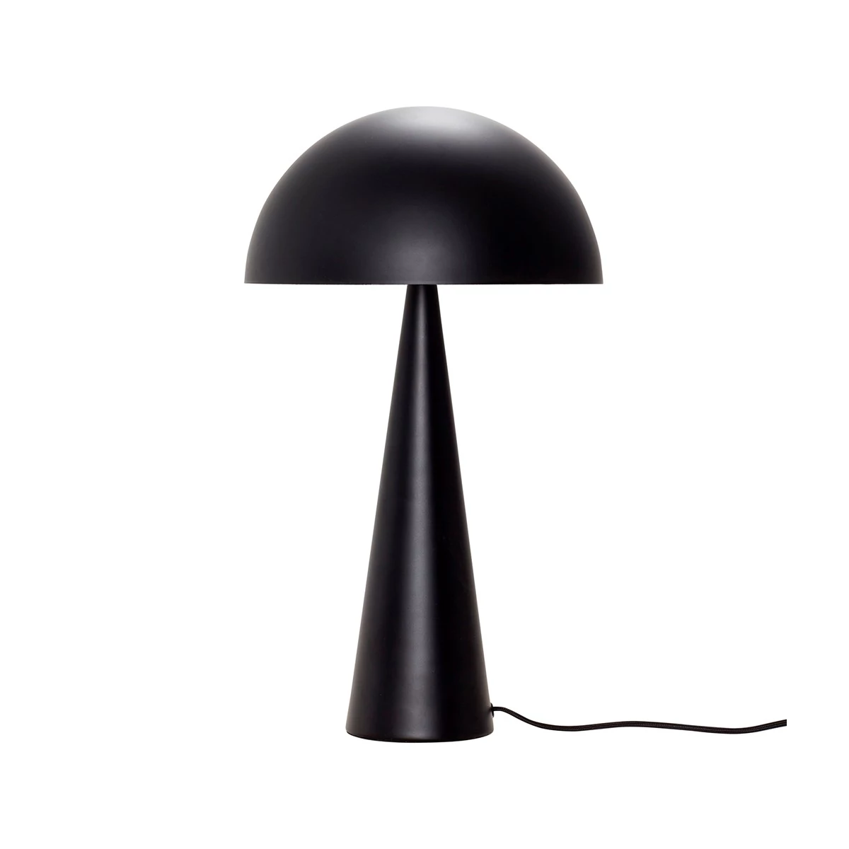 Gomba alakú fekete asztali lámpa, amely modern, gombára hasonlító formájával azonnal felhívja magára a figyelmet. Ez az asztali lámpa stílusos kiegészítője lesz akár a nappalinak vagy a hálószobának. A lámpa búrájának átmérője 30 cm, a magassága 50 cm. A vezeték fekete, textil. Gyártó: Hübsch