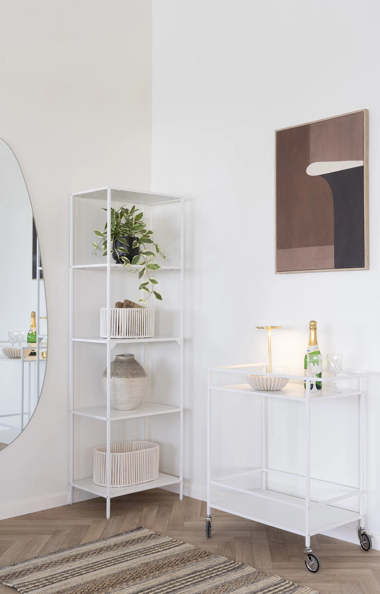 A nyitott polcok könnyen rendetlenséget sugallhatnak, ezért a skandináv stílusban tudatosan, kevés tárggyal használják őket. Néhány könyv, egy növény vagy egy kerámia dekor bőven elég ahhoz, hogy személyes legyen a tér.