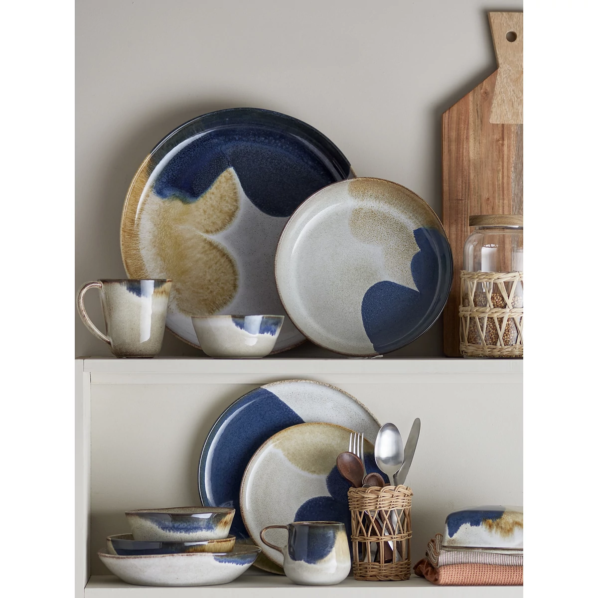 Kék mintás kerámia 4 személyes étkészlet, amely 4 db nagy lapostányért, 4 db kisebb lapostányért és 4 db mélytányért tartalmaz. Az étkészlet 100% kerámia, sötétkék és sárga mintával. Ez az étkészlet feldobja az étkezések hangulatát vidám színkombinációjával. Mosogatógépben mosható, mikrohullámú sütőben használható. A tányérok átmérője 22 és 28,5, a mélytányér átmérője 22 cm. Gyártó: Bloomingville