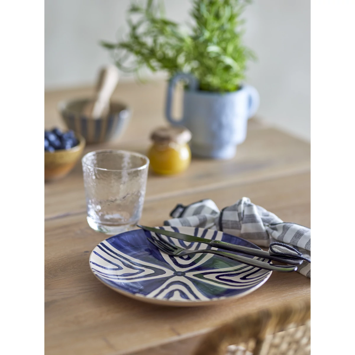 Kék mintás kerámia tányér 6 db-os szettben, amely gyönyörű kék mintájú, kézzel festett tányér készlet. A kézi festés egyedivé teszi, ezért minden tányér kicsit más. A tányérok tökéletes kiegészítői a természetes, rusztikus terítésnek. Átmérője 20,5 cm. Gyártó:Bloomingville