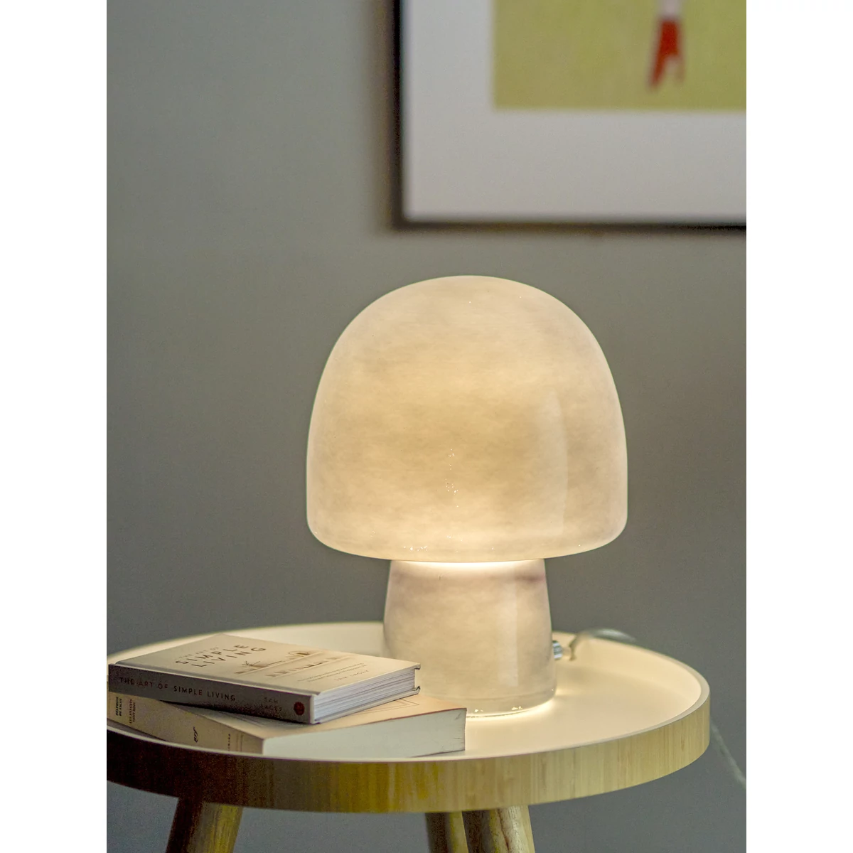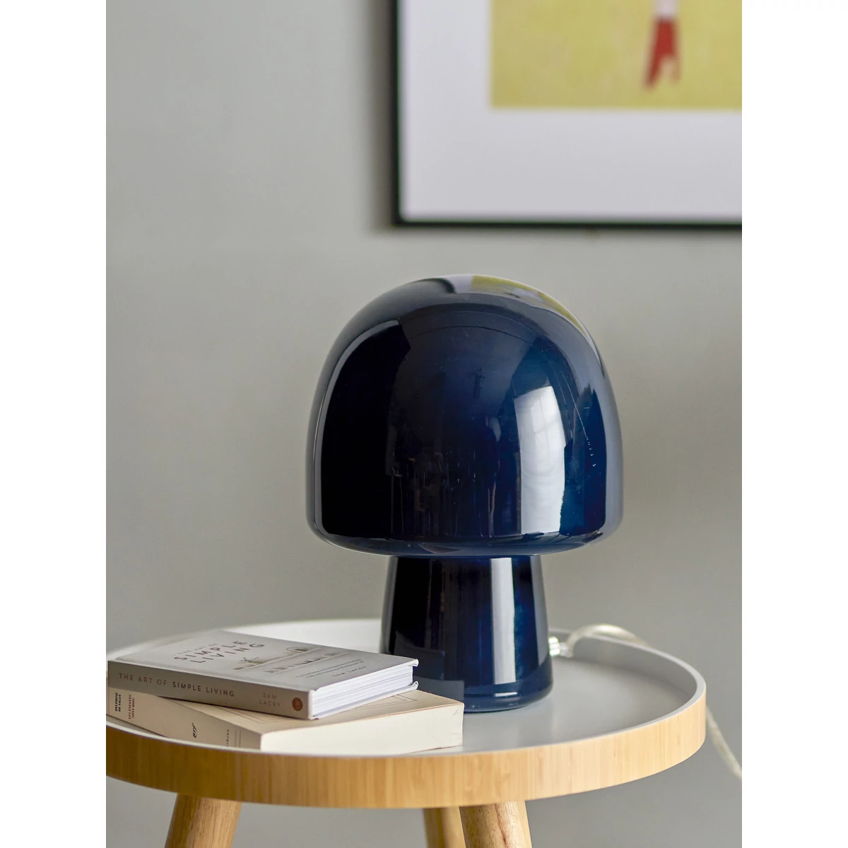 Kék üveg gomba asztali lámpa, amely különleges kék üvegből készült és gombát formál. A lámpa meggyújtva világos színűvé változik és teljes egészében világít. Nagyon különleges hangulatot kelt ezzel az egyedi megoldással. Az asztali lámpát használhatod a hálóban vagy nappaliban hangulat világításként. A lámpa magassága 26,5 cm. Gyártó: Bloomingville
