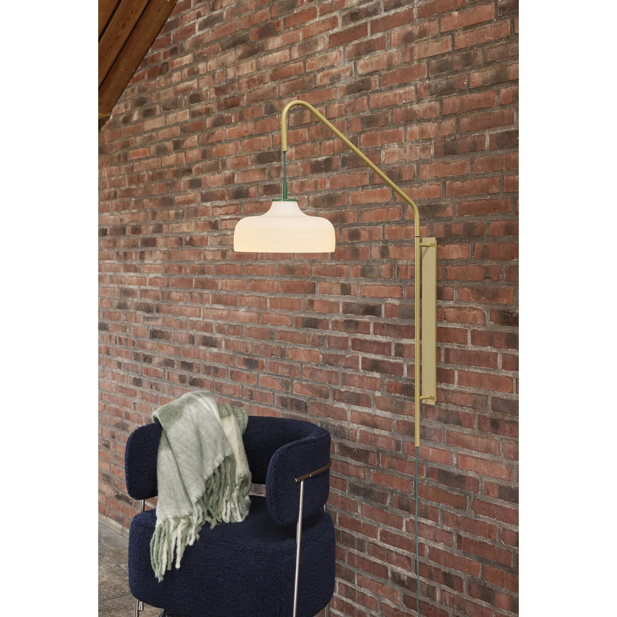 Keki színű fali lámpa, amely keki színű lámpavázzal és zöld színű vezetékével játékosságot csempész az enteriőrbe. A lámpa magassága 111 cm, hosszúsága 71 cm, szélessége 30 cm, vezetéke 200 cm, zöld színű. Gyártó: Hübsch