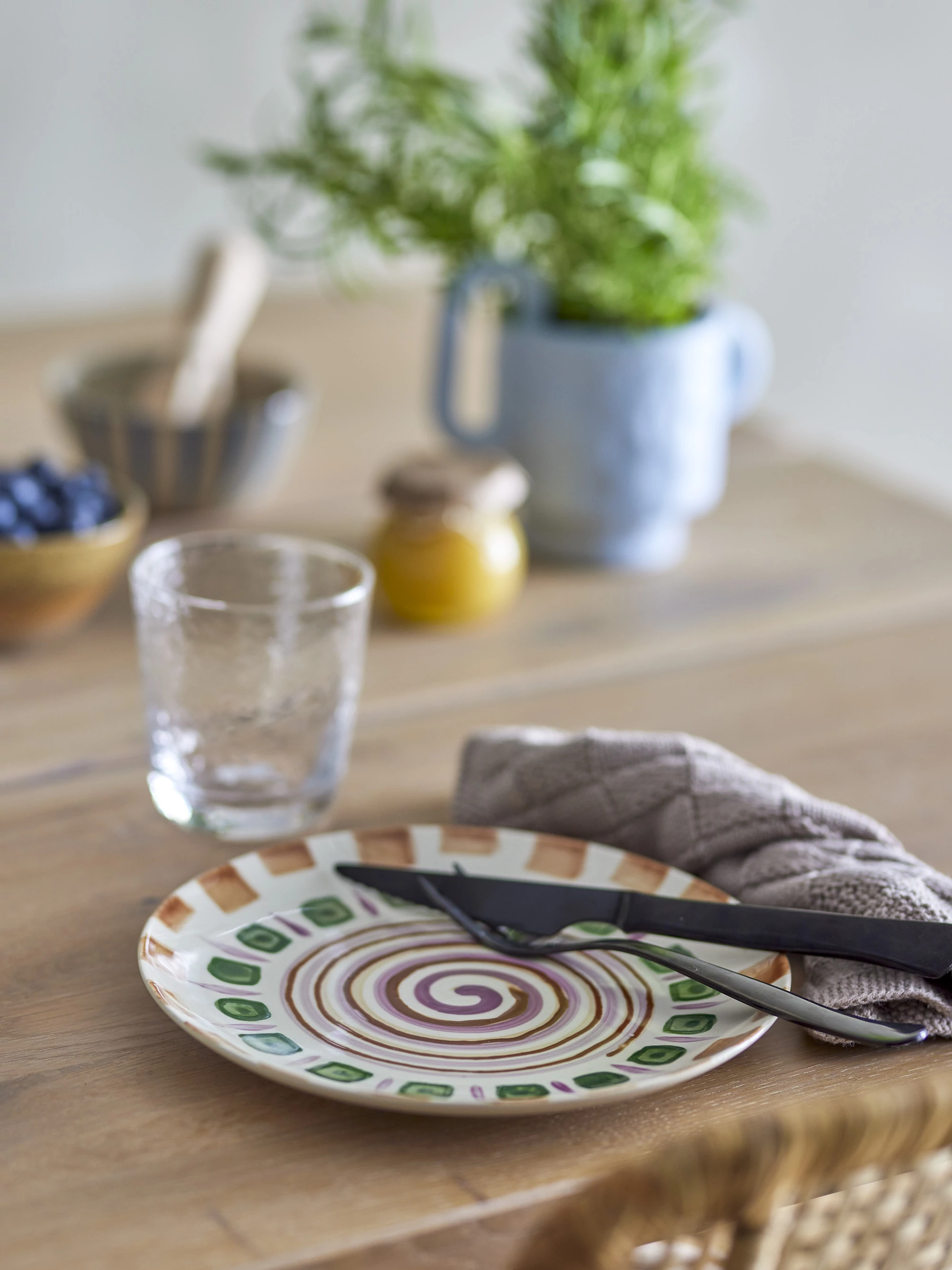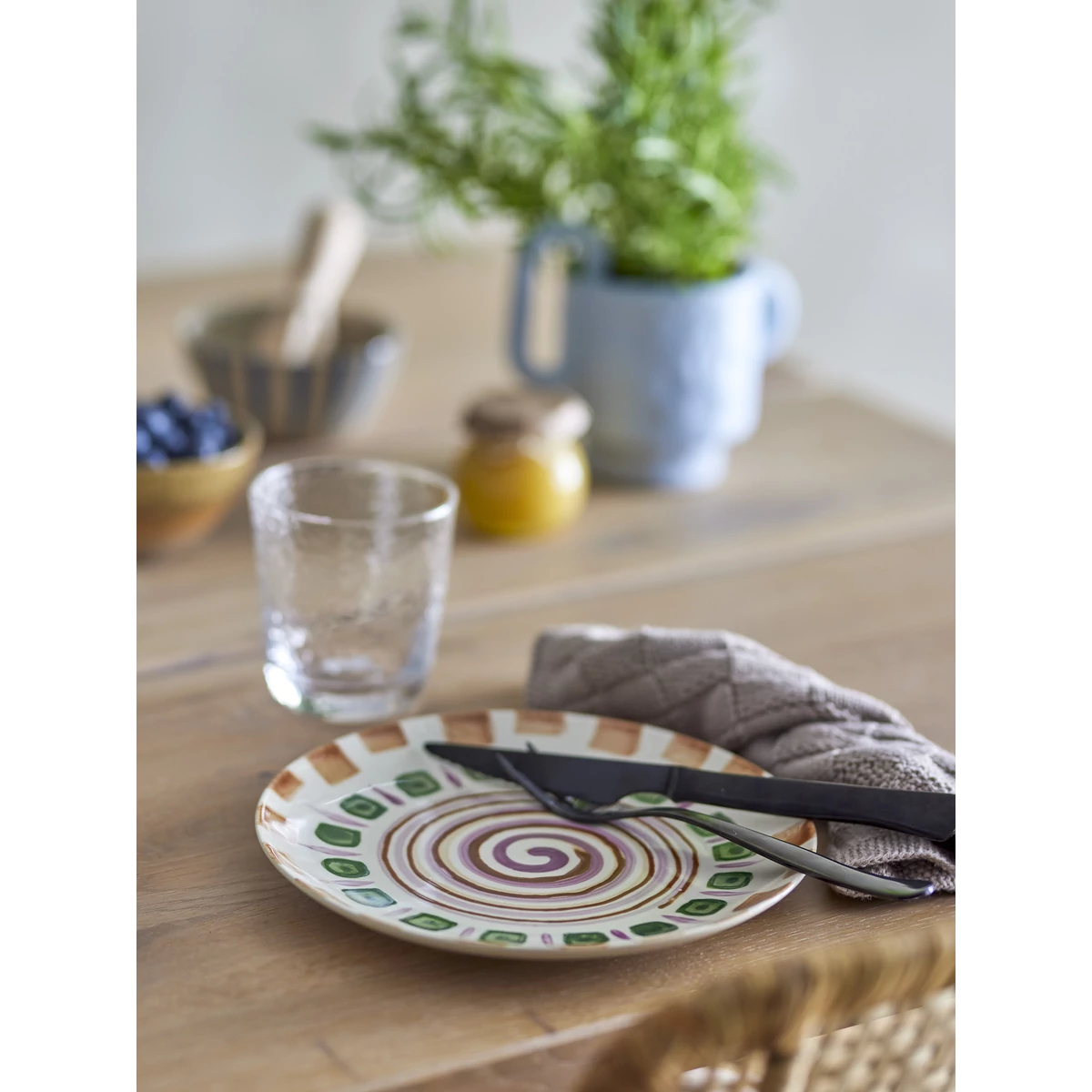 Lila és zöld mintás kerámia tányér 6 db-os szettben, amely gyönyörű élénk színekben pompázó, kézzel festett tányér készlet. A kézi festés egyedivé teszi, ezért minden tányér kicsit más. A tányérok tökéletes kiegészítői a természetes, rusztikus terítésnek. Átmérője 20,5 cm. Gyártó:Bloomingville