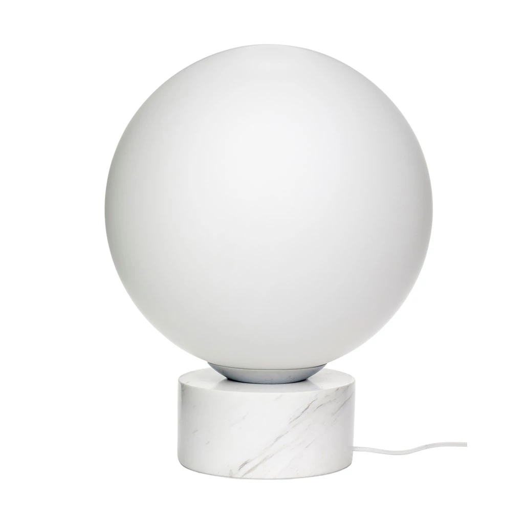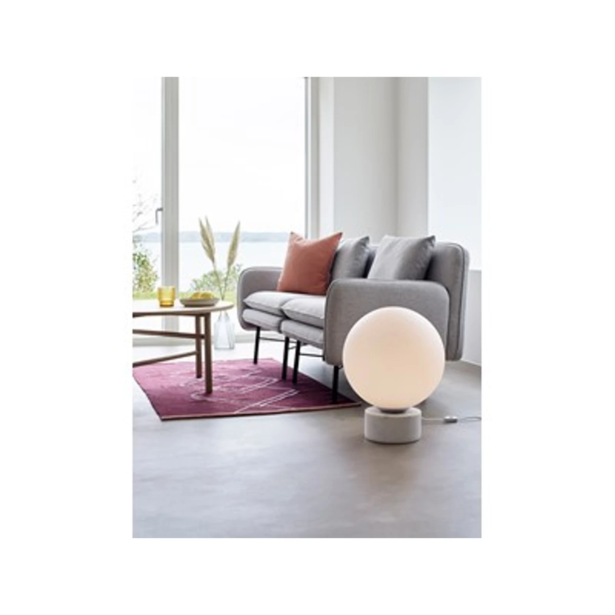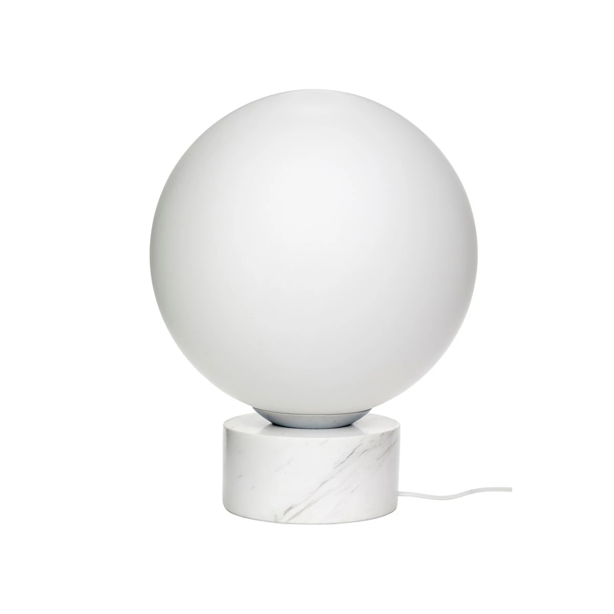 Márvány és fehér állólámpa,amely kiváló hangulatvilágításnak. Ha igazán modern otthont szeretnél, ez az állólámpa fantasztikusan fel fogja dobni a napplid vagy a hálószobád. A lámpa márvány talpazaton áll, amely tökéletesen illik a matt fehér üveg búrához. Letisztult skandináv design és elegancia. A lámpa vezetéke fehér textil. A lámpa magassága 50 cm. Gyártó: Hübsch