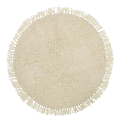 Natúr kör alakú gyapjú szőnyeg, amely puha tapintásával, letisztult formájával és különleges rojtozásával magát a skandináv eleganciát testesíti meg. Könnyen kezelhető és a lakás bármely pontját otthonossá varázsolja. A szőnyeg anyaga 70% gyapjú, 30% pamut, átmérője Ø110 cm. Gyártó: Bloomingville