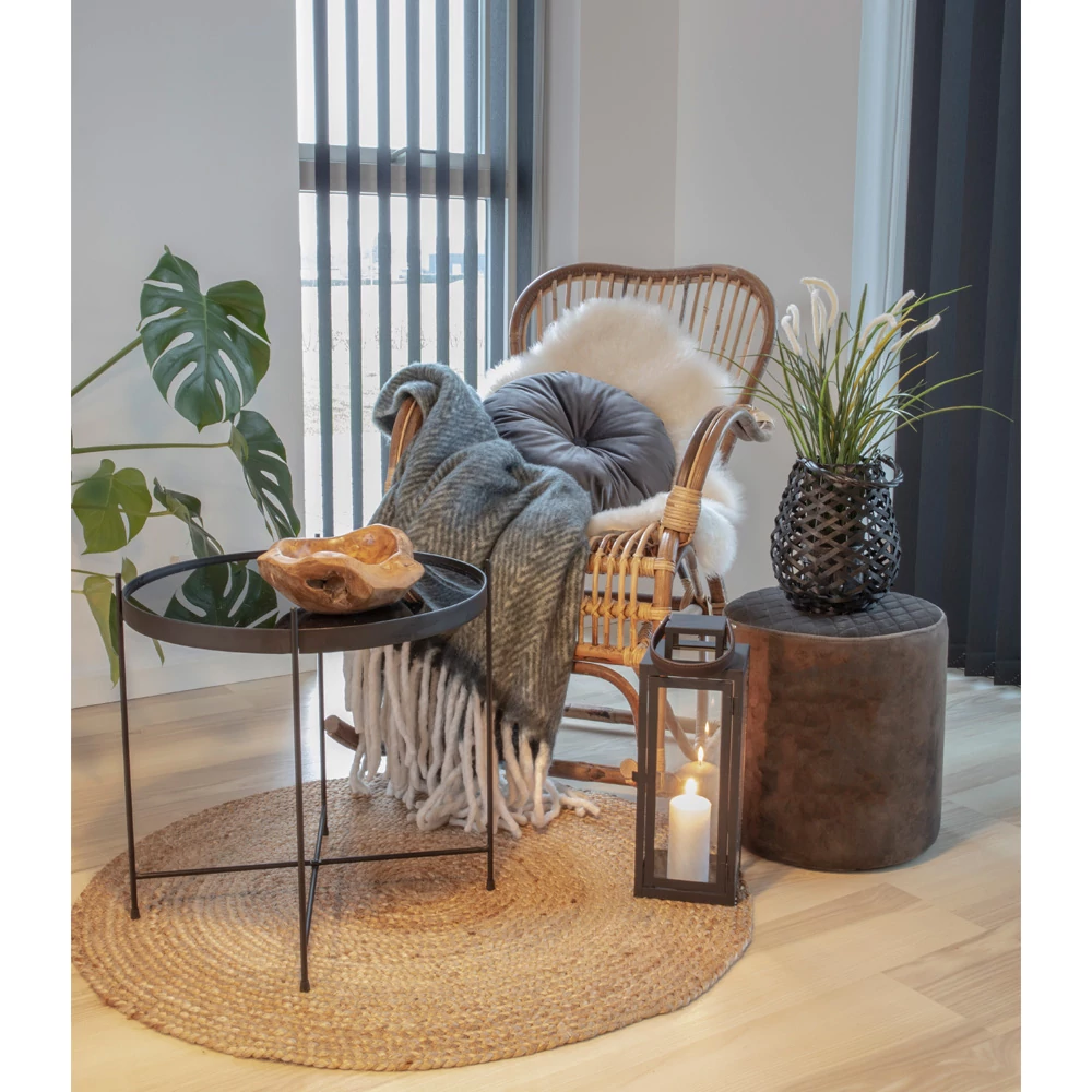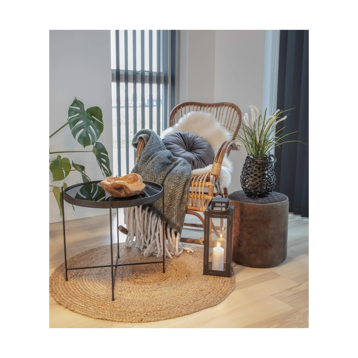 Natúr, kör alakú fonott juta szőnyeg, amely természetes megjelenésével és letisztultságával bármely enteriőrbe könnyedén elhelyezhető. Anyagának és egyszerű formájának köszönhetően ezzel a darabbal garantáltan barátságosabbá és természetközelibbé varázsolod otthonodat. Kis méretéből kifolyólag könnyedén fel tudod dobni vele a szoba bármely pontját, amelyet még kicsit hiányosnak érzel. Átmérője 90 cm. Gyártó: House Nordic