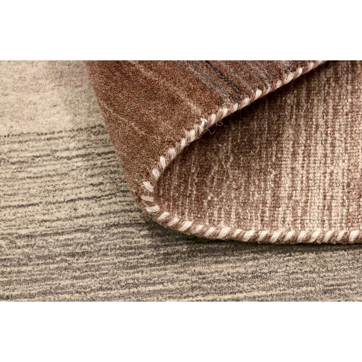 Barna színes prémium gyapjú szőnyeg. Természet ihlette minta, kézzel szőtt 100% gyapjú szőnyeg. Mérete: 90x160 cm