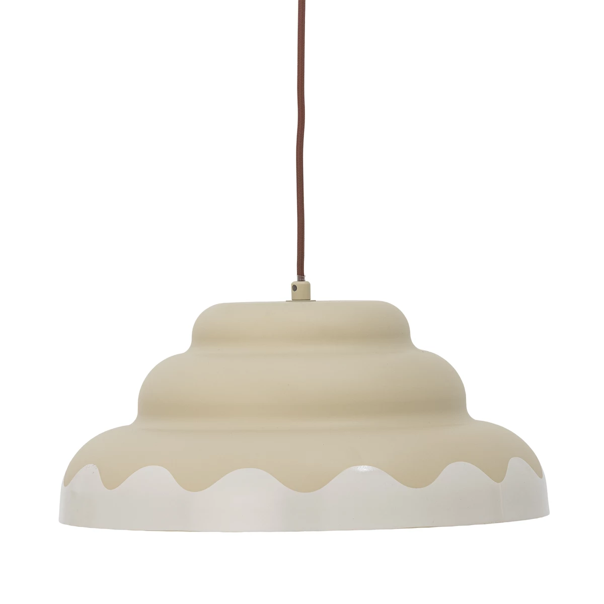 Natúr színű kerek függőlámpa, amely világos, természetes színével elegáns hatást kelt, ugyanakkor a lámpa vezetéke piros textil így játékosságot is csempész a térbe. A függőlámpa búrája fémből készült, amelyen matt és világos hullámos mintájú máz látható. A lámpa magassága 40 cm, a vezeték hossza 250 cm. Gyártó: Bloomingville