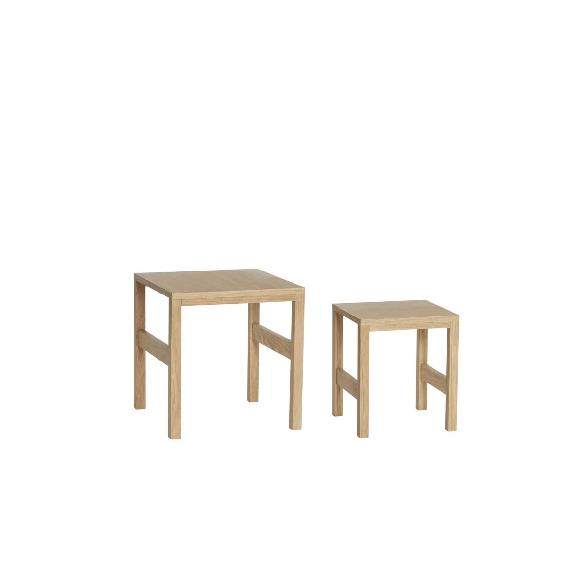 Natúr tölgyfa kisasztal 2 db-os szettben, amely praktikus és egyben stílusos kiegészítő. A kisebbik asztal befér a nagyobb alá, így helyet takaríthatunk meg, amikor nem használjuk. Ez a letisztult vonalú kisasztal szett igazi skandináv kedvenc. FSC® tanusítvánnyal, amely azt jelenti, hogy a fa alapanyaga felelős erdőgazdaságból és más ellenőrzött forrásokból származik. Mérete 32x32xh37 és 40x40xh42cm. Gyártó: Hübsch