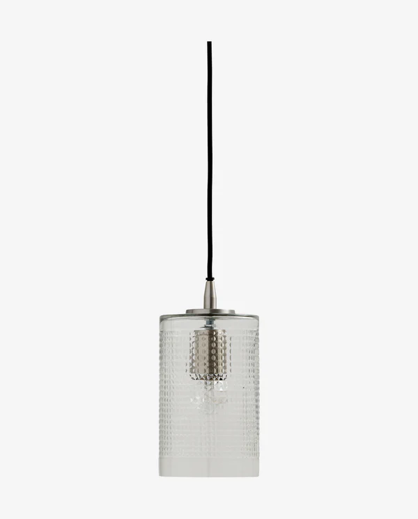 Nordic üveg hengeres függőlámpa, amely letisztult, igazi skandináv gyöngyszem. A függőlámpa kézzel készült, csiszolt üvegből. A függőlámpa üveg búráját apró gömbök díszítik, fekete vezetéke 2 méter hosszú, így nagyobb belmagasságú helységekben is használható. A lámpa mérete 12x22 cm. Gyártó: Nordal