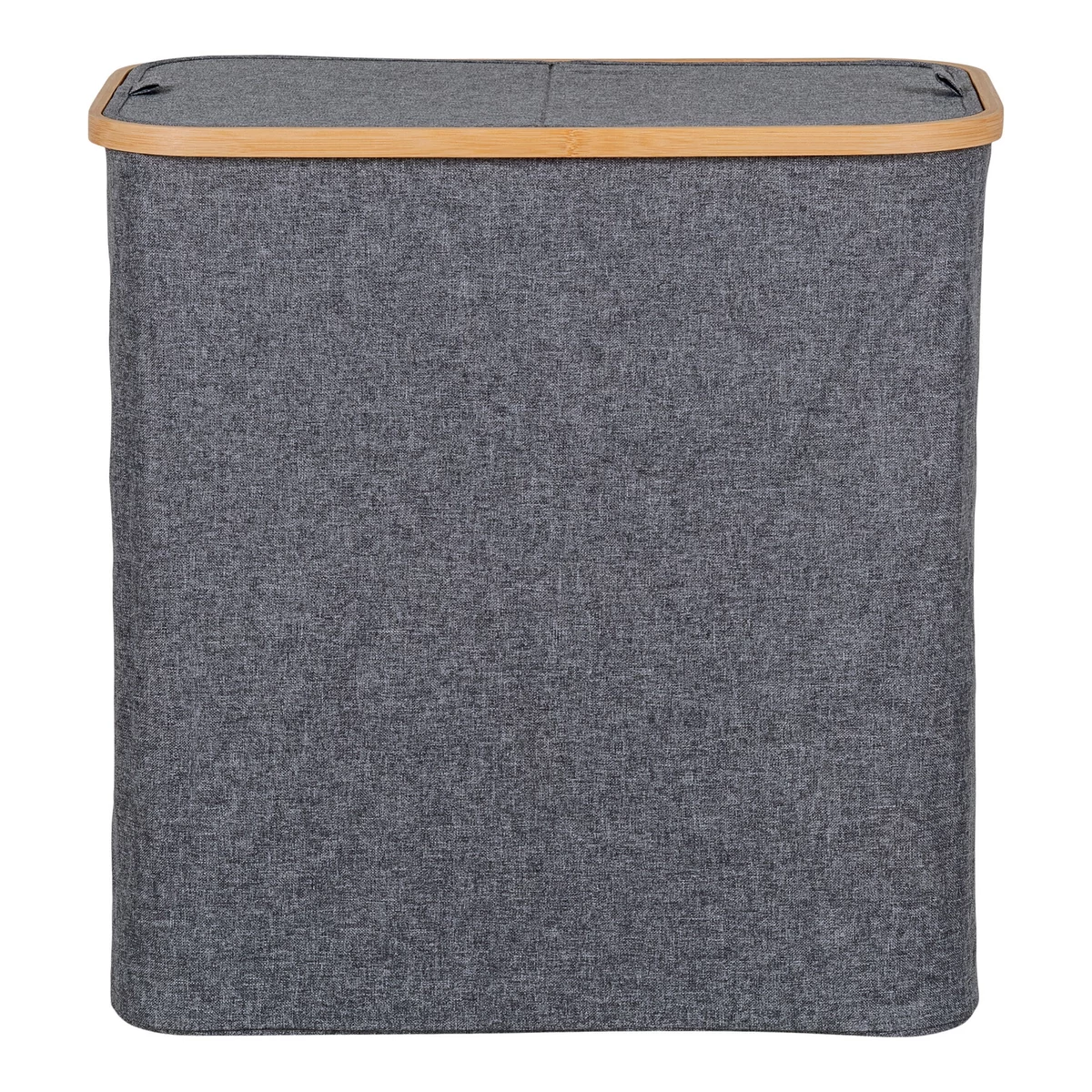 Fedeles szennyeskosár 54 cm. Sötétszürke textil és bambusz szennyestartó. Praktikus és stílusos megoldás a fürdőszobában. Mérete 54x33x54 cm