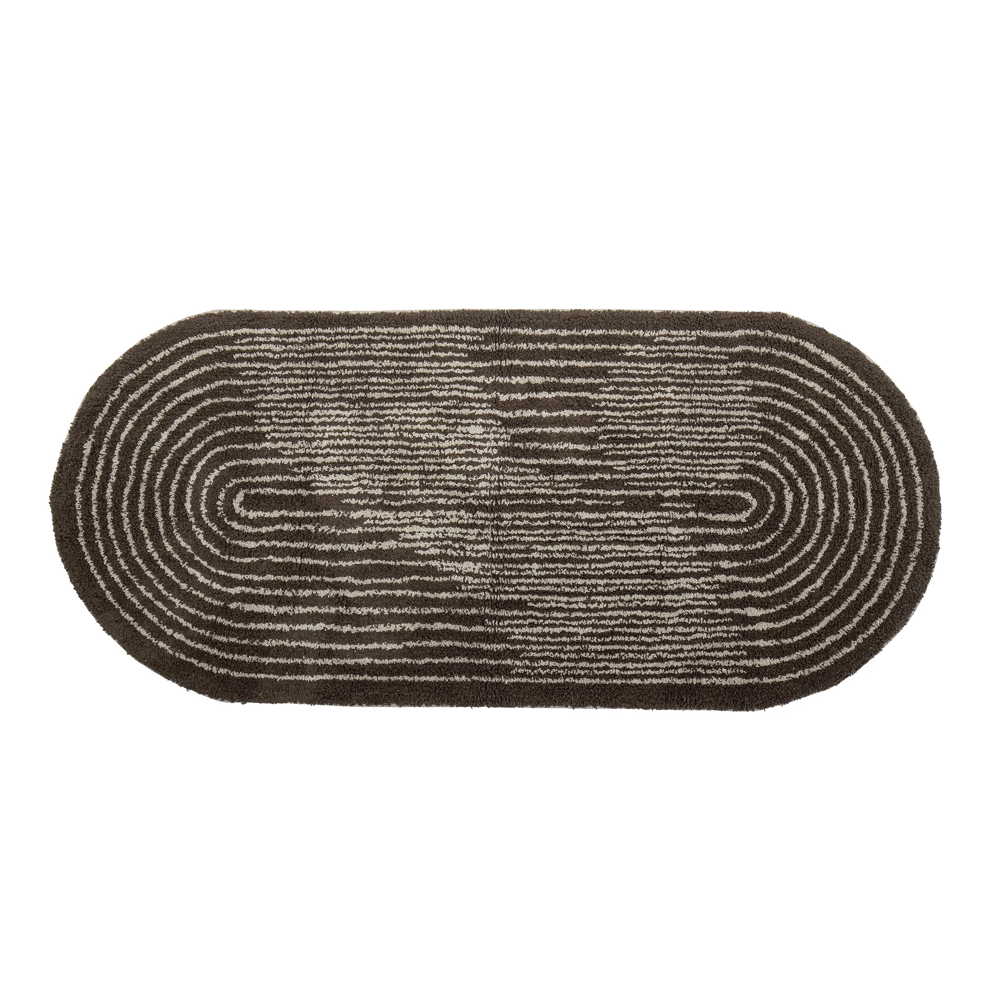 Ovális barna pamut szőnyeg, amely gyönyörű sötétbarna színű szőnyeg. Kiválóan illeszkedik a fa bútorokhoz, kiegészítőkhöz akár modern vagy rusztikus stílusú enteriőrben is. A szőnyeg anyaga 97% pamut. Ajánljuk a nappali szobába, hálóba. Mérete 160x70 cm. Gyártó: Bloomingville