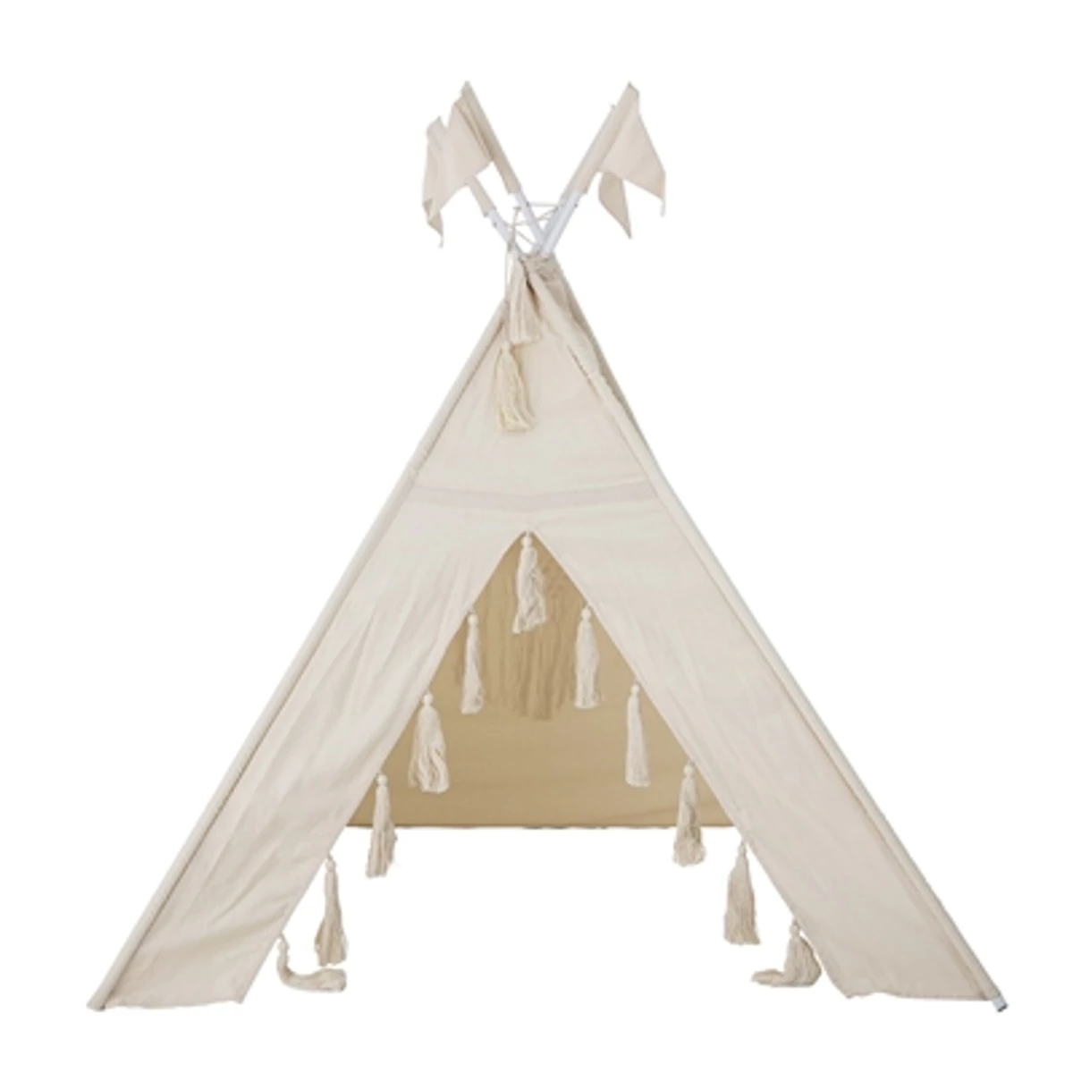 Világos színű, vidám pamut játszósátor. Ez a játszósátor amellett, hogy nagyon strapabíró és masszív, ugyanakkor ízléses natúr színű és rojtos díszítése engedi szárnyalni a fantáziát. Lehet akár indiánsátor, felfedezősátor vagy éppen babakuckó is. Természetes anyagú így a szellőzése is kíváló. A játékot 24 hónapon felüli gyerekeknek ajánljuk. Anyaga pamut és vas, mérete 110x140x110 cm. Gyártó: Bloomingville