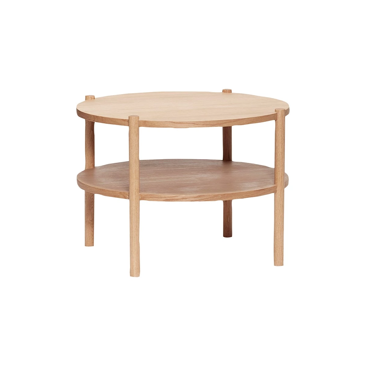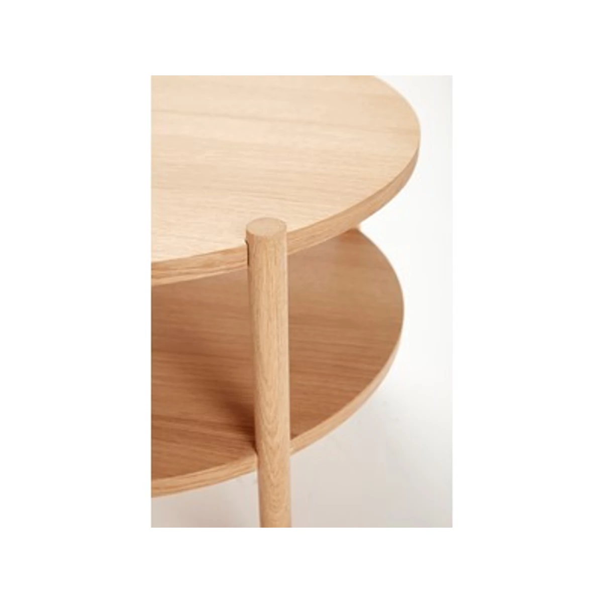 Polcos tölgyfa dohányzóasztal, amely magas minőségű, letisztult stílusú igazi skandináv minimalista darab. A dohányzóasztal egy lerakó polccal is ellátott, így az újságokat, magazinokat kéznél tarthatjuk anélkül, hogy extra helyet foglalnának az asztalon. A dohányzóasztal anyaga tömör fehér tölgyfa, átmérője 60 cm, magassága 44 cm. Gyártó: Hübsch