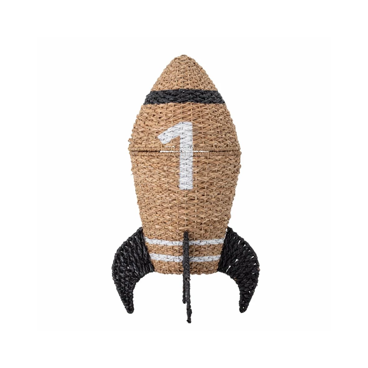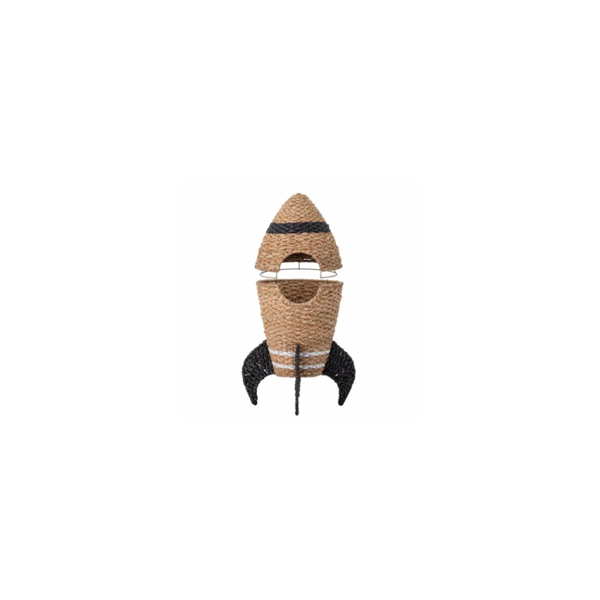 Rakéta formájú tároló kosár,amely gyermekek számára látványos és érdekes módon ábrázol rakétát. Ez az aranyos és egyben praktikus fonott kosár tökéletes választás babaszobába, gyerekszobába vagy akár fürdőszobába szennyestartónak. A kosárba lehet plüssállatokat tartani vagy más játékot így a rendrakás néhány perc alatt befejezhető. Ez a kedves kinézetű kosár természetes anyagból készült, natúr színű így minden gyerekszobába tökéletesen illik. A kosár átmérője 40 cm, a magassága 68,5 cm. Gyártó: Bloomingville