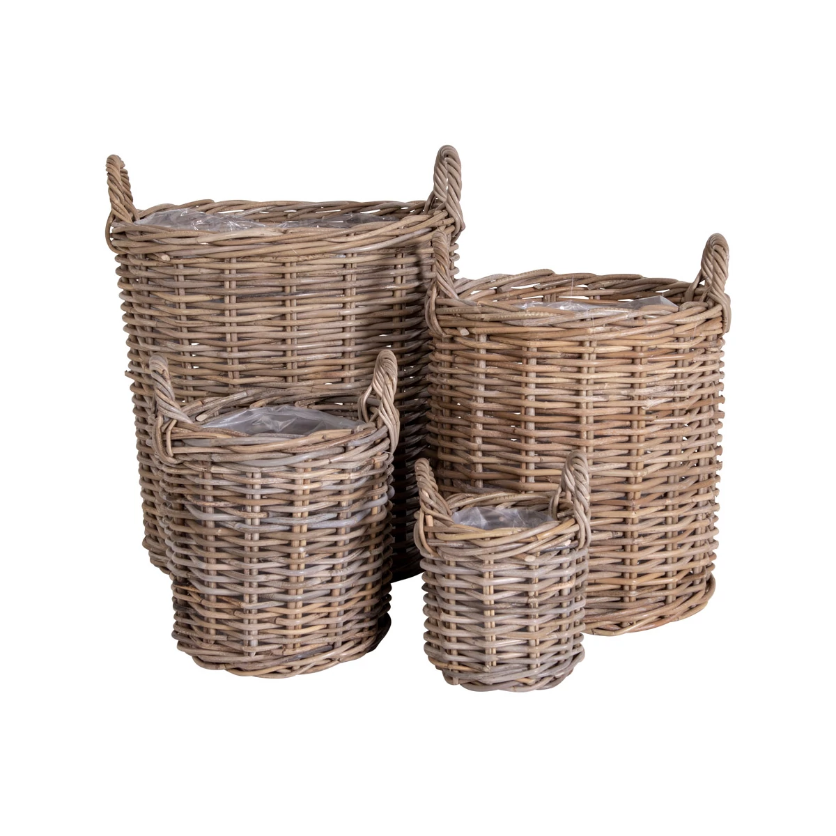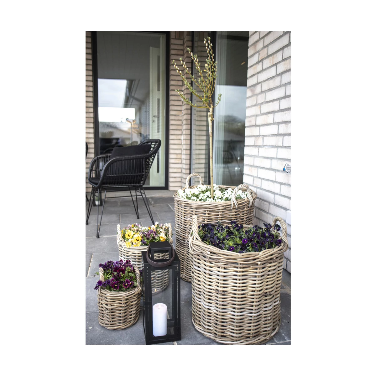 Rusztikus rattan fonott kosár 4 db, amely kialakitásának köszönhetően tökéletes kültérre és beltérre egyaránt. Különböző helyeken elhelyezve is egységet alkotnak, így kiválóan használhatók akár többféle tároló megoldásként is. A kosarak bélelése miatt kaspóként is használhatjuk. Gyártó: House Nordic
