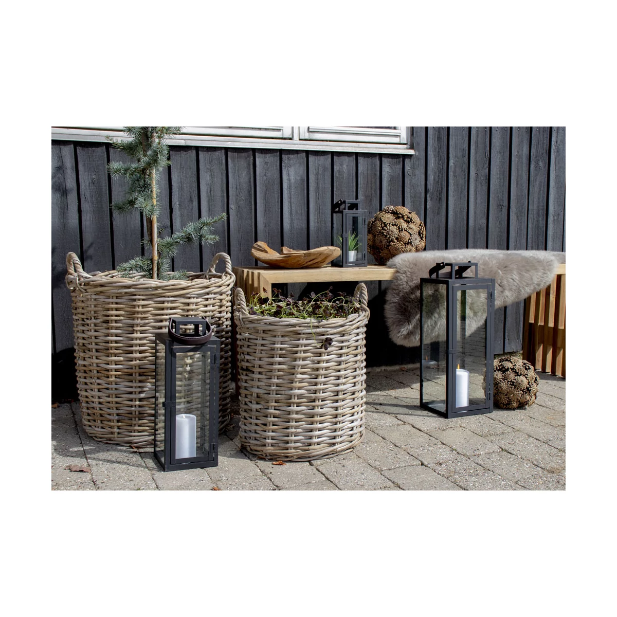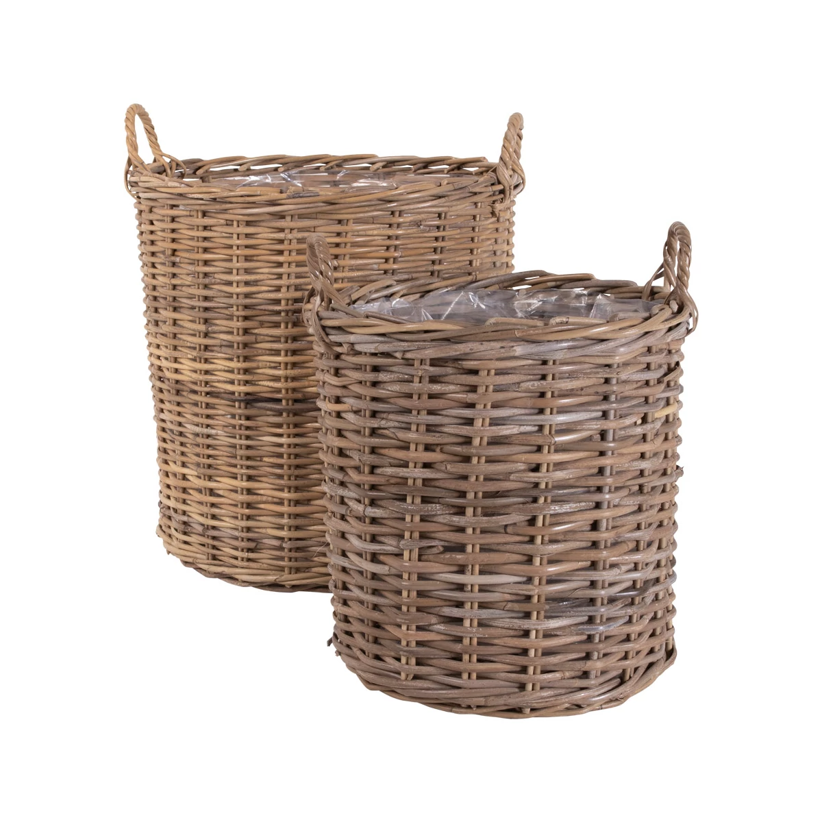 Rusztikus rattan kosár 2 db-os szettben , amely a skandináv stílust hozza el otthonodba. A kosarak fólia béléssel ellátottak, így nyugodtan használhatod kaspóként is. A rattan kosarak egyaránt jól mutatnak kint a teraszon vagy akár bent a szobában is. Méretei 40 és 50 cm átmérők, 48 és 58 cm magasságok. Gyártó: House Nordic