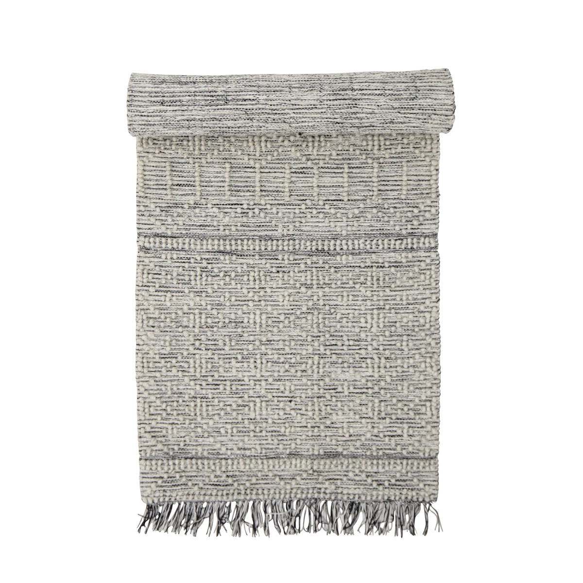 Rusztikus szürke mintás szőnyeg, amelyet anyagában szőtt mintája tesz különlegessé. A szőnyeg széle rojtozott, színe a fekete és natúr keveréke. Kellemes kiegészítője lesz a modern nappalinak vagy hálószobának. Puha érzetű, ezért azt fogod kívánni, bárcsak egész nap mezítláb járhatnál rajta. Hosszúsága 245 cm, szélessége 75 cm. Gyártó: Creative Collection by Bloomingville