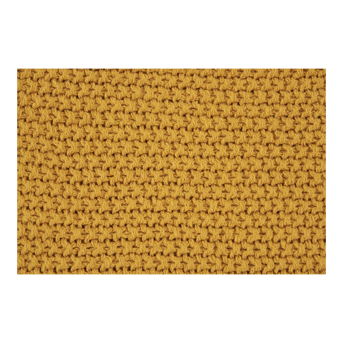 2 db Okkersárga színű újrahasznosított pamut díszpárna. Mérete 45x45 cm. Töltettel együtt érkezik, huzata kötött pamut.