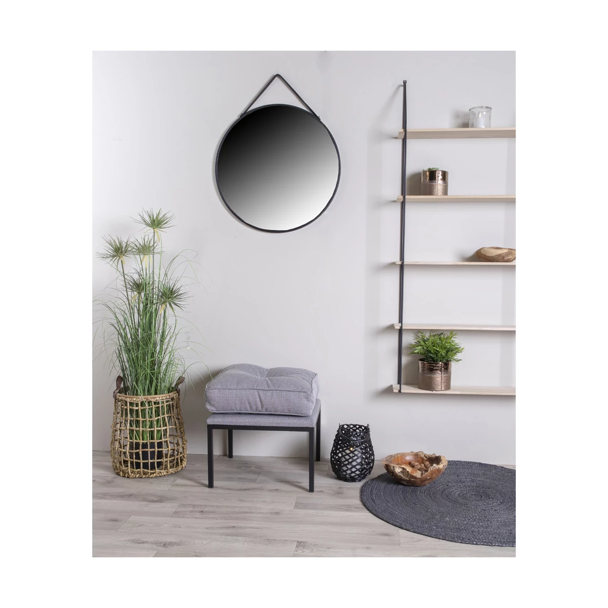Skandináv acél keretes kör tükör, amely tökéletes kiegészítője lesz az otthonodnak. Gyönyörűen egyszerű kivitelezésének köszönhetően remekül beleillik bármilyen interiőrbe legyen az nappali, hálószoba vagy akár az előszoba. Egyediségét a fekete acél kereten kívül a PU-ból készült hevedere adja, ami elősegíti a könnyű installációt. Átmérője 60 cm. Gyártó: House Nordic