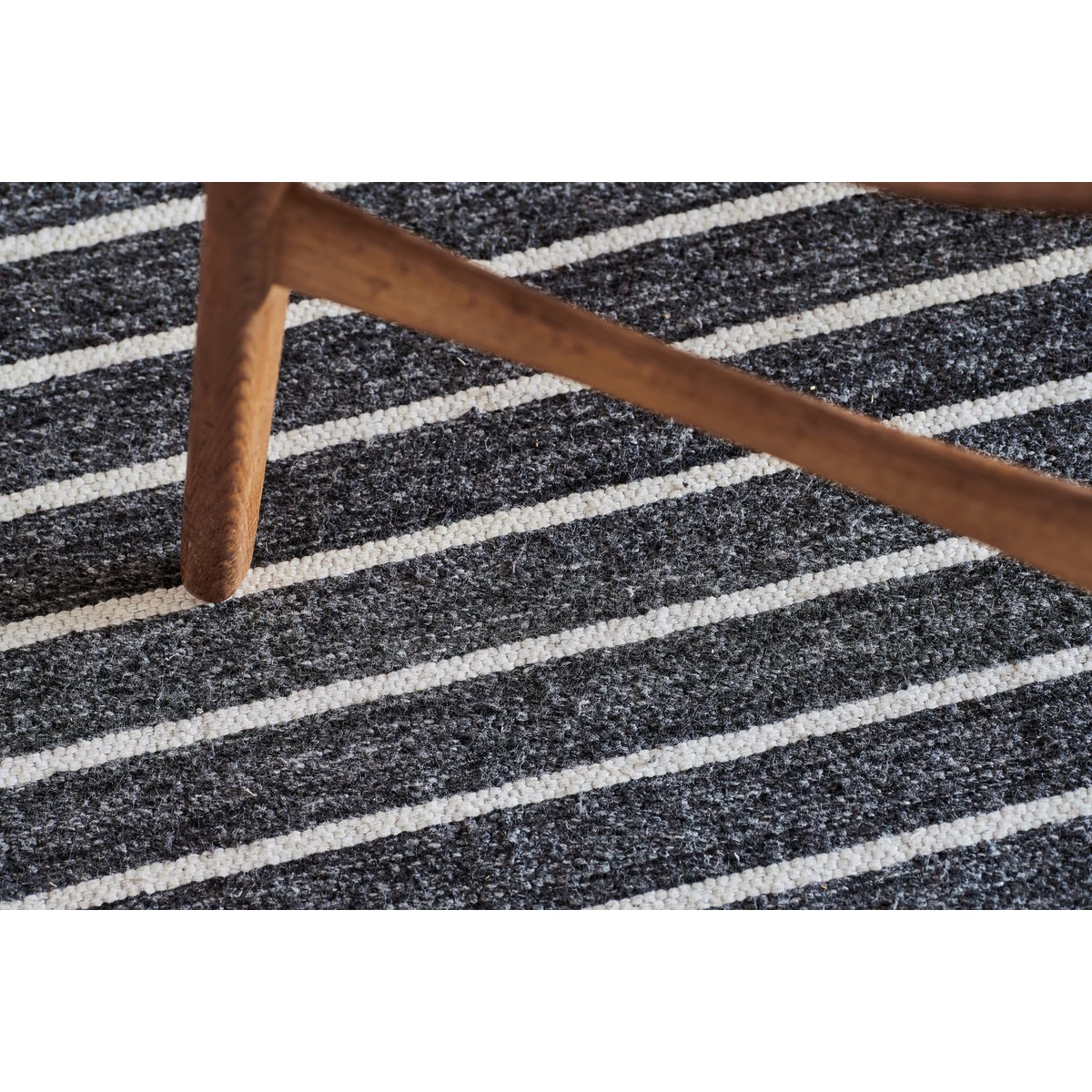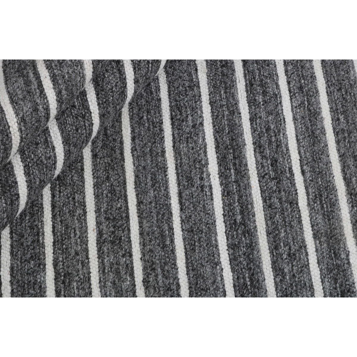 Sötétszürke és fehér csíkos prémium szőnyeg, amely a modern skandináv stílust képviseli. Kézi szövésű szőnyeg, mely az első osztályú bambusz viszkóznak köszönhetően kap extra csillogó felületet. Ez a szőnyeg minimalista megjelenésével minden helyiségben jól mutat, puha anyagú. úgy fogod érezni, mintha bársonyon járnál. Anyaga viszkóz. Mérete: 200x140 cm cm. Gyártó: Rezas