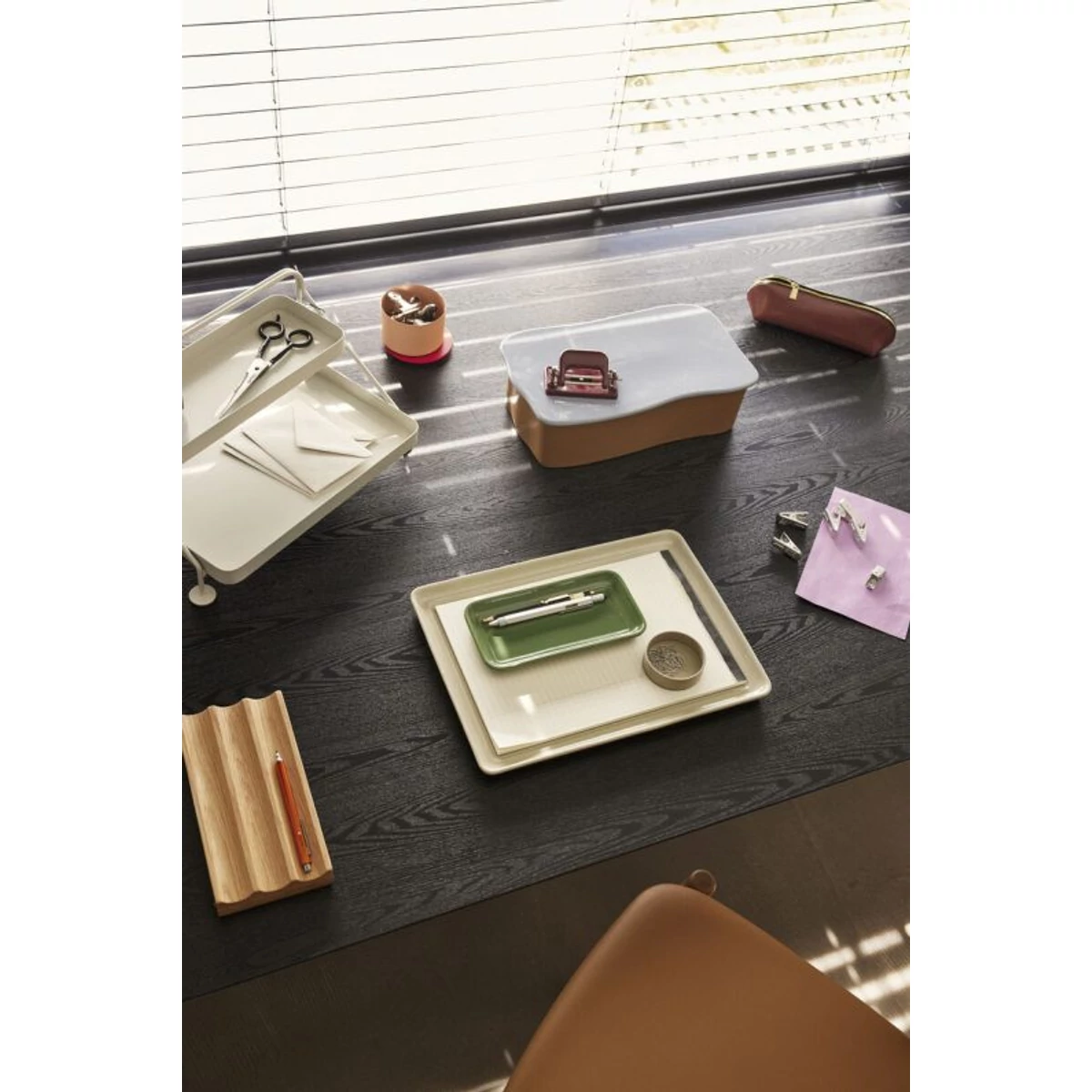 Szürke fém irattartó, amely letisztult, modern stlusú kiegészítő az íróasztalra. Ha szeretnéd, hogy az íróasztalod rendezett és stílusos legyen, ez az irattartó tökéletes választás lesz. Mérete: 38x25x20 cm. Gyártó: Hübsch