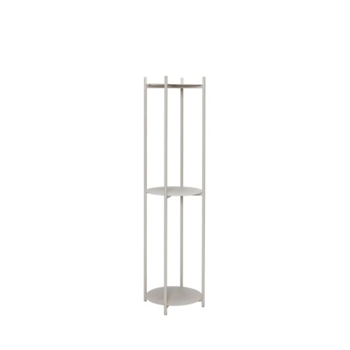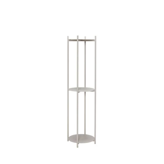 Szürke fém polcállvány, amely skandináv stílusú praktikus kiegészítő bútor a nappaliban vagy más helységben. Világos szürke, 3 polcból álló fém állvány, melyet használhatsz növényeid bemutatására vagy kedvenc dísztárgyaidat is ráhelyezheted. A polcállvány különleges henger alakú, ezért jól használható sarkokban, amelyeket szeretnél jobban hasznosítani vagy kiemelni. Mérete 42x151 cm. Gyártó: Hübsch