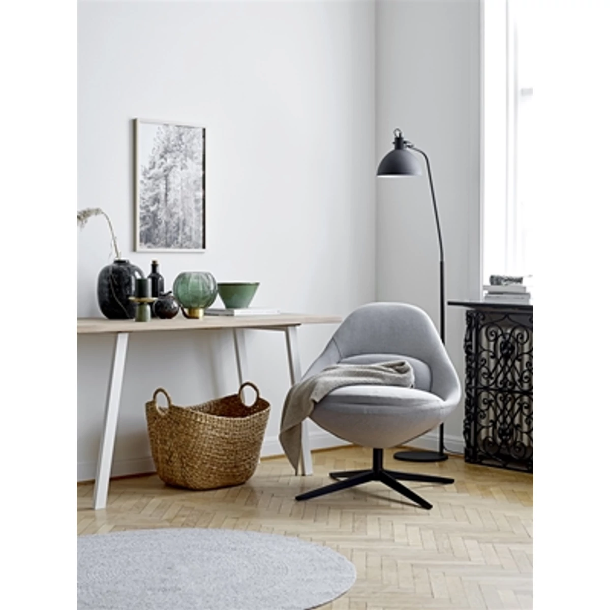 Szürke kör alakú poliészter szőnyeg, amely egyszerre klasszikus és mégis bohó. Színének és formájának köszönhetően a lakás bármely pontján megállja a helyét, legyen az a hálószoba vagy akár a nappali. A szőnyeg anyaga 80% poliészter, 20% pamut, átmérője Ø120 cm. Gyártó: Bloomingville