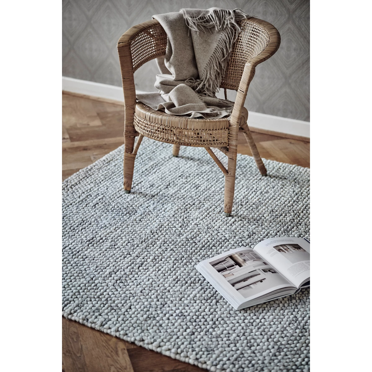 Szürke prémium buborék szőnyeg, amely buborékos megjelenését a különleges kézi szövési technikának köszönheti. Ennek során az anyagból kisebb csomókat képeznek és ezeket szövik össze, a végeredmény pedig egy nagyon egyedi struktúrájú, kiemelkedő minőségű és megjelenésű szőnyeg. Anyaga 40% gyapjú, 40% viszkóz és 20% pamut. A gyapjú szőnyegek körültekintő ápolásával évtizedekig élvezheted szépségüket. Mérete: 170x240 cm. Gyártó: Rezas