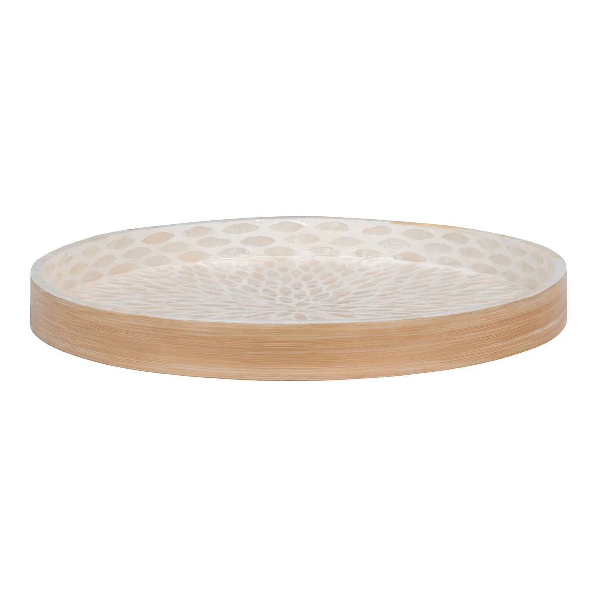 Tálca, bambusz/capiz, bézs, 40x40x3,5 cm