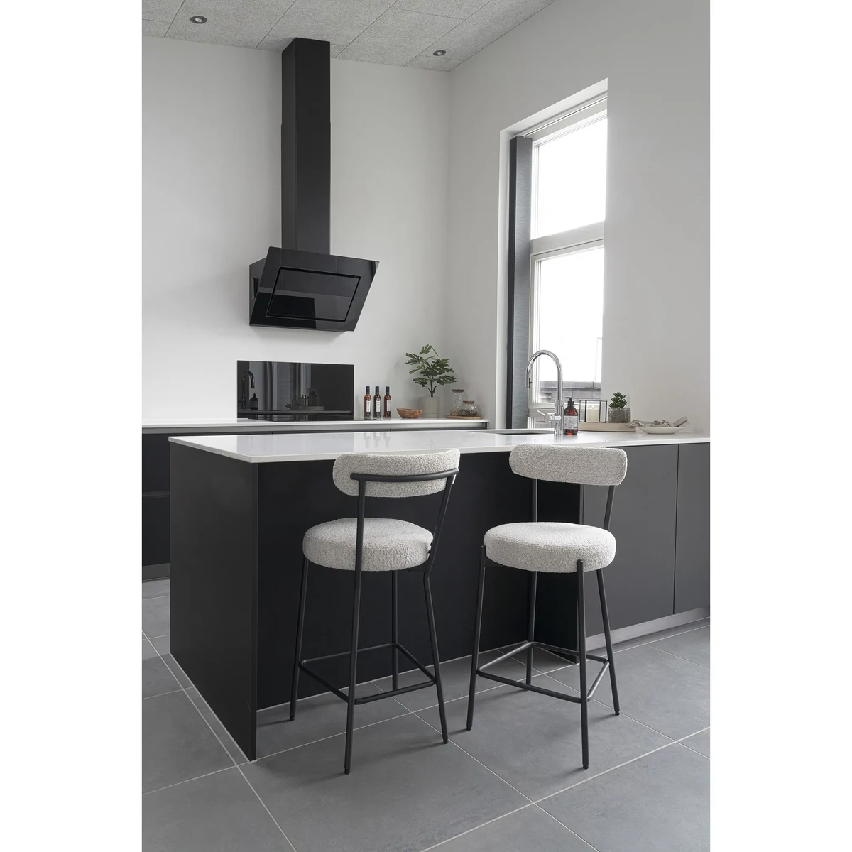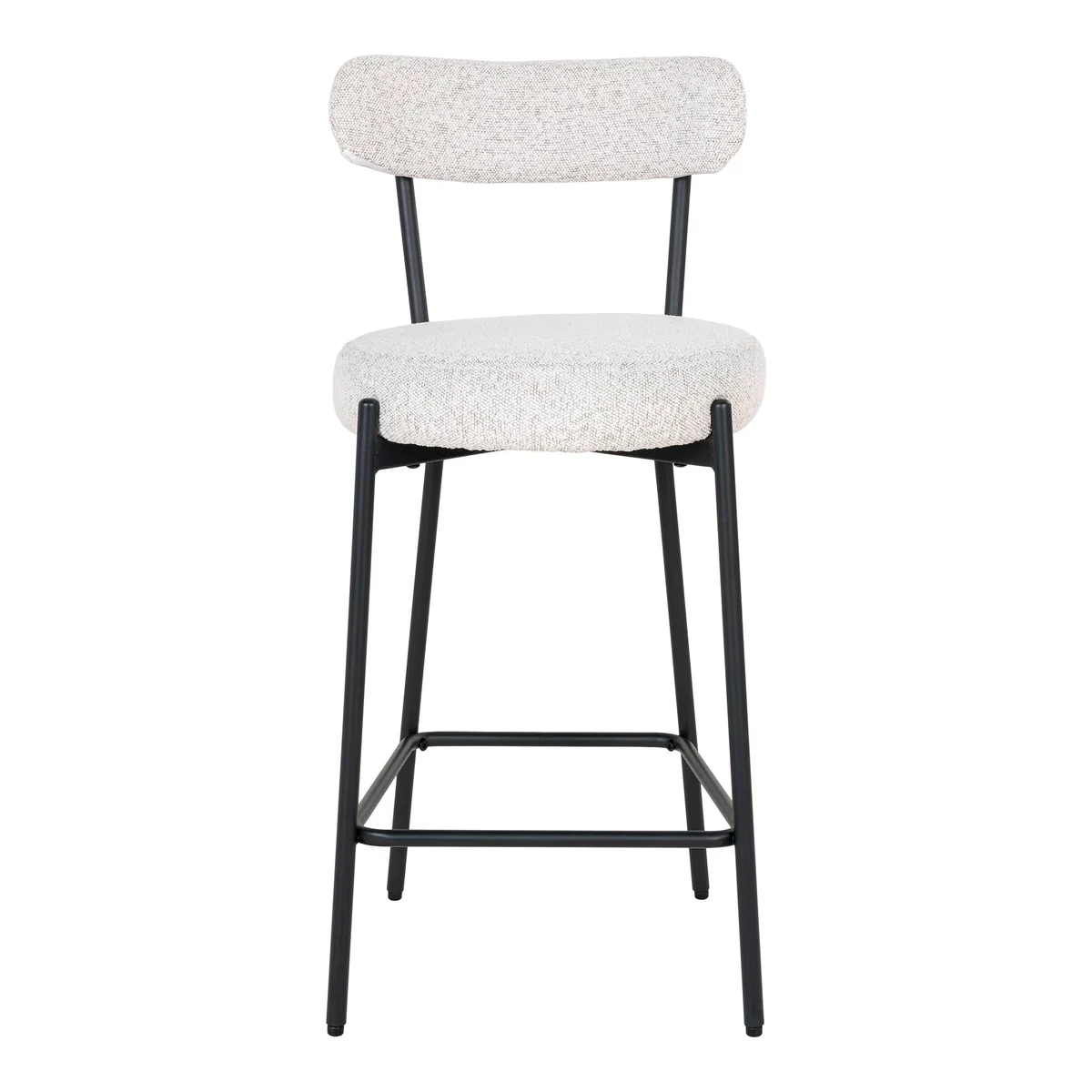 Támlás fehér szövet bárszék, amely praktikus és kényelmes ülésmegoldás pulthoz. A bárszék kényelmes ülőfelülete és ergonomikus támlája a hétköznapi használatot élménnyé teszi. A bárszéken lábtartó segíti a felülést és fokozza a kényelmet. Mérete: 46x39x90 cm. Gyártó: House Nordic