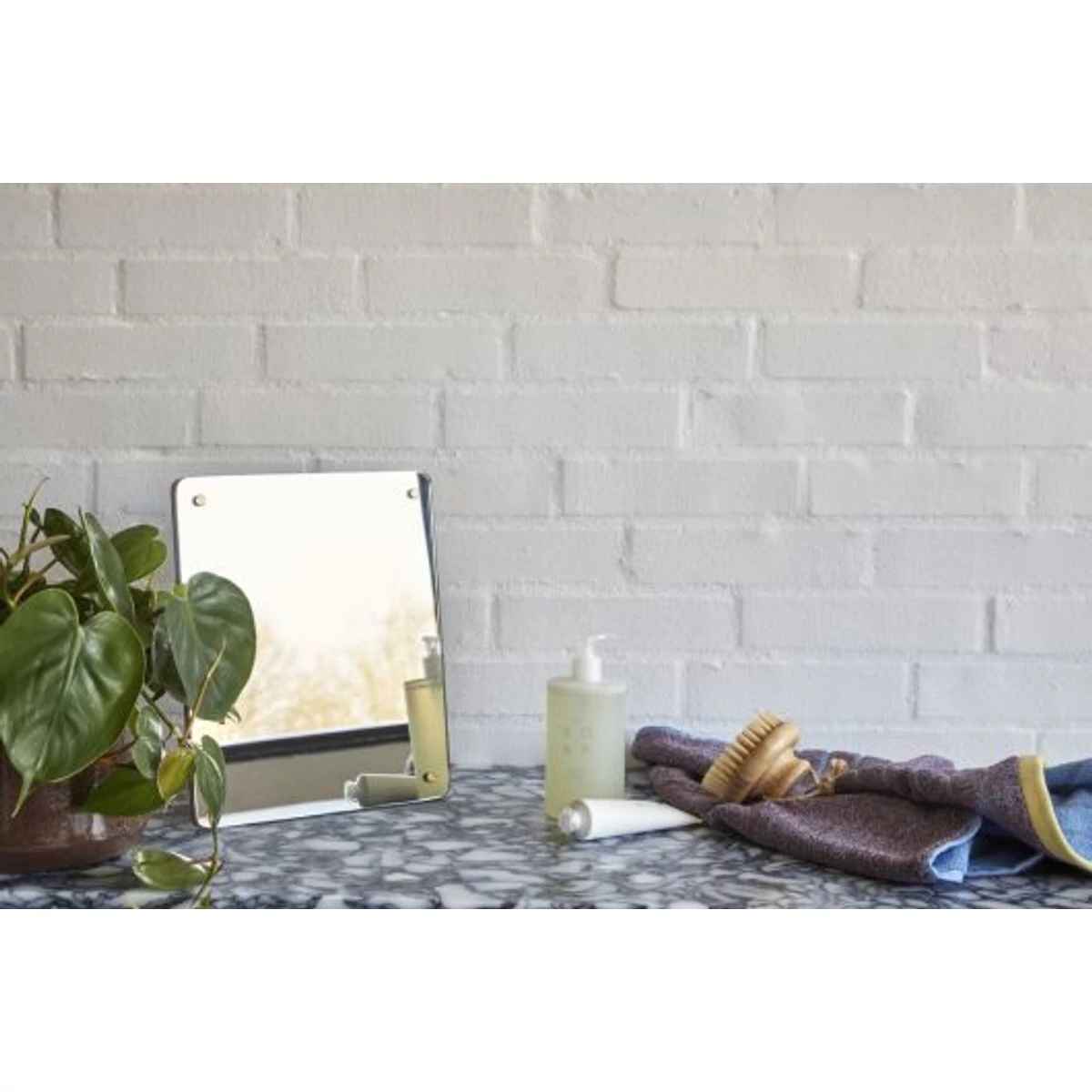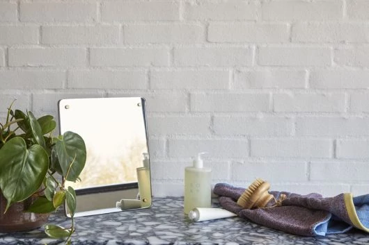 Tölgyfa kis tükör, amely praktikus, modern stlusú kiegészítő a pipereasztalra. A tükröt igényes, tölgyfa hátoldala és csillogó sárgaréz csavarjai teszik igazán slusossá. Mérete: 25x9x30 cm. Gyártó: Hübsch
