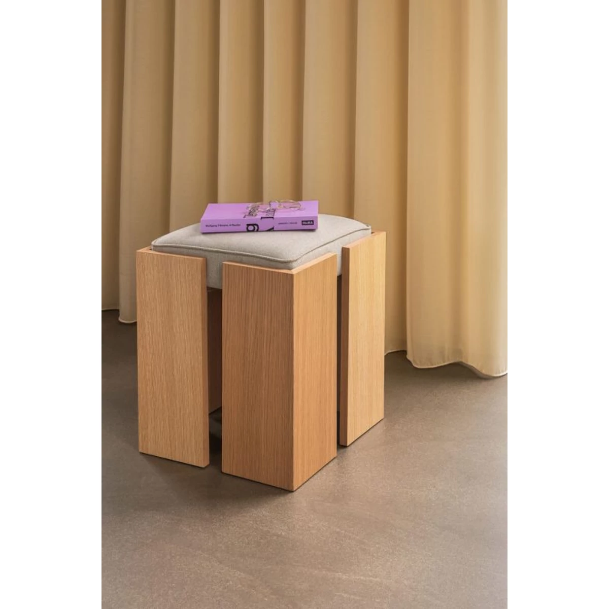 Tölgyfa kocka ülőke párnával. Skandináv hangulatú, modern kiegészítő. Mérete 39x39x46 cm
