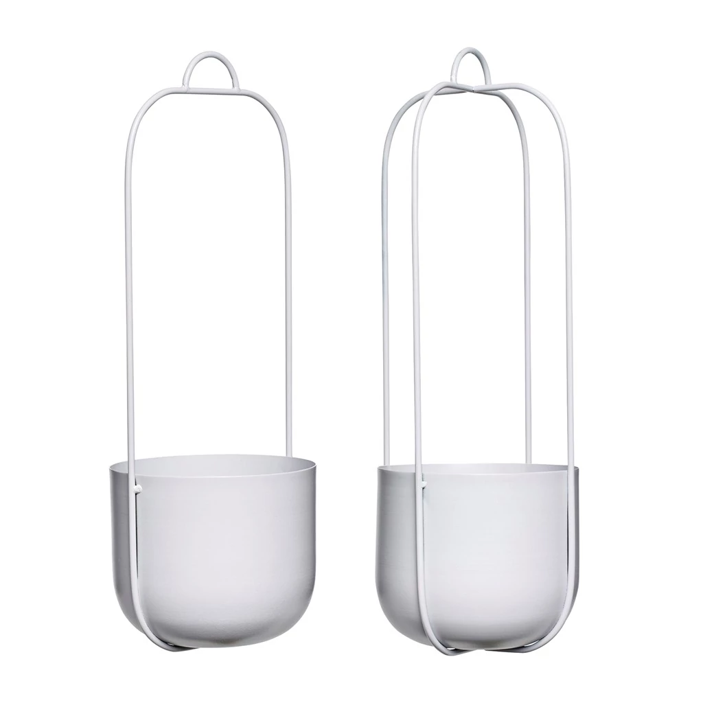 Világosszürke függő kaspó szett 2 db, amely igényes kivitelezésű, fémből készült és valódi skandináv hangulatot teremt a szobában. A 2 db-os kaspó szett a benne csüngő zöld növényekkel igazán barátságossá fogja tenni otthonod. A térben elhelyezett dekorációs elemek mindig jobban érvényesülnek, biztos lehetsz benne, hogy a figyelem erre a függő kaspóra fog irányulni. A kaspók anyaga fém, átmérőjük 16 cm, a magasságuk 44 cm. Gyártó: Hübsch