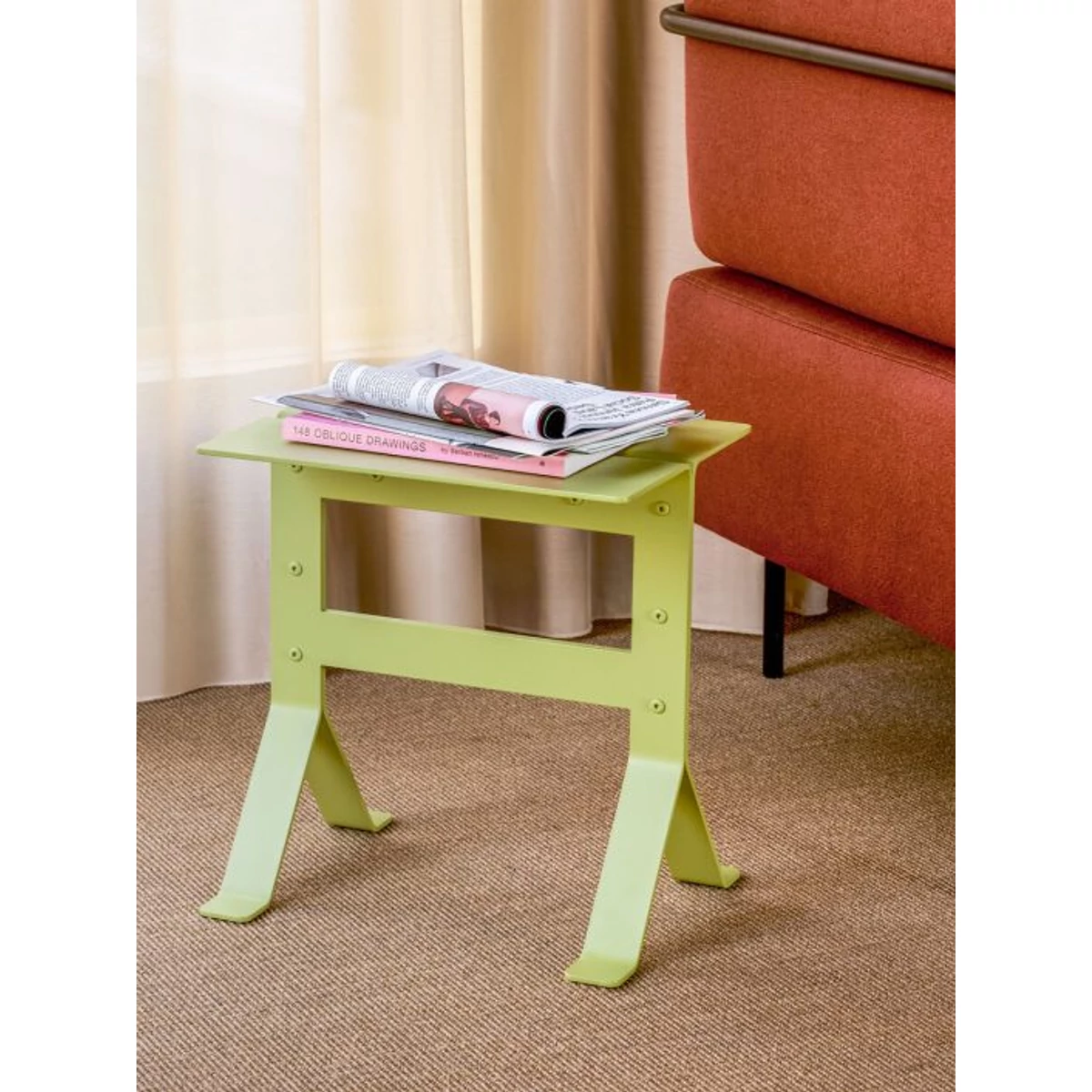 Világoszöld fém lerakóasztal. Retró stílusú, praktikus kisasztal. Magassága 42 cm