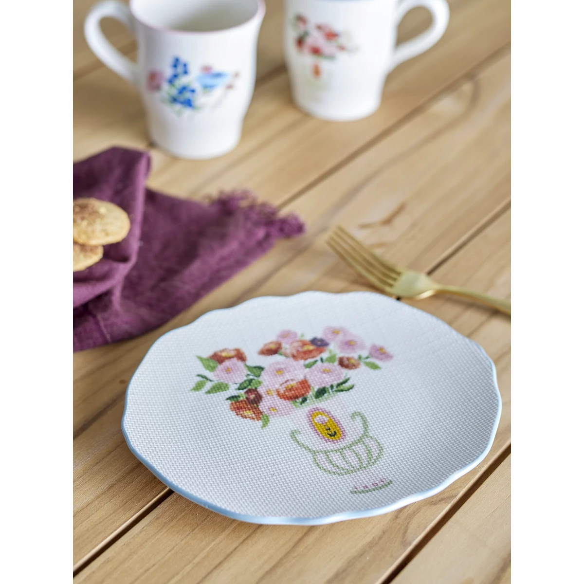 Virág mintás kerámia kék lapostányér szett, amely nagyon szép kézzel festett virág motívumokat ábrázol és a romantikát csempészi a hétköznapokba. A tányérok felülete a hímzéshez hasonló, apró négyzethálós ettől a tányérok még különlegesebbek. A tányérok széle világoskékre van festve. A tányérok egyedileg készültek, ezért apró eltérések lehetnek. Mérete 17x20 cm. Gyártó: Bloomingville